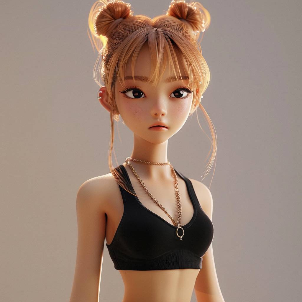 Blackpink member Lisa wearing Strappy tank top, 3D Pixar and Disney style, simple clean background --ar 1:1 --v 6.0