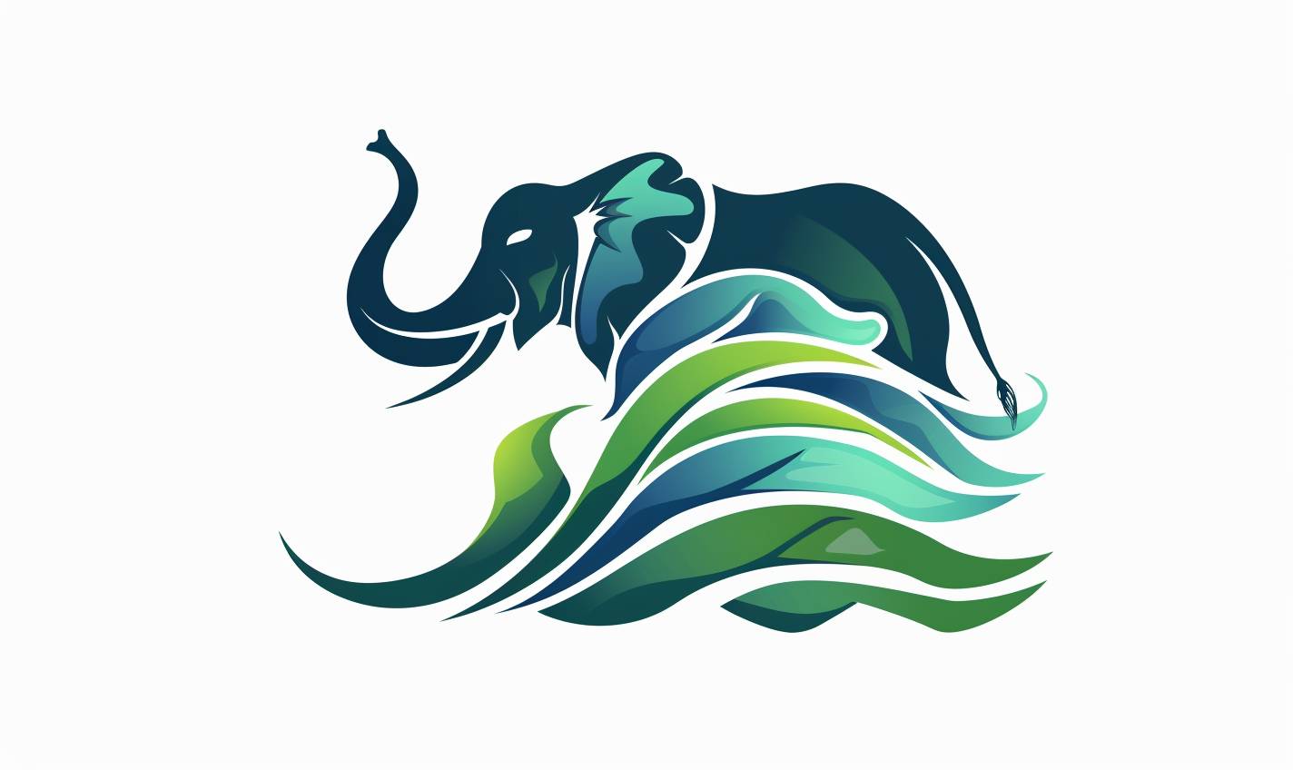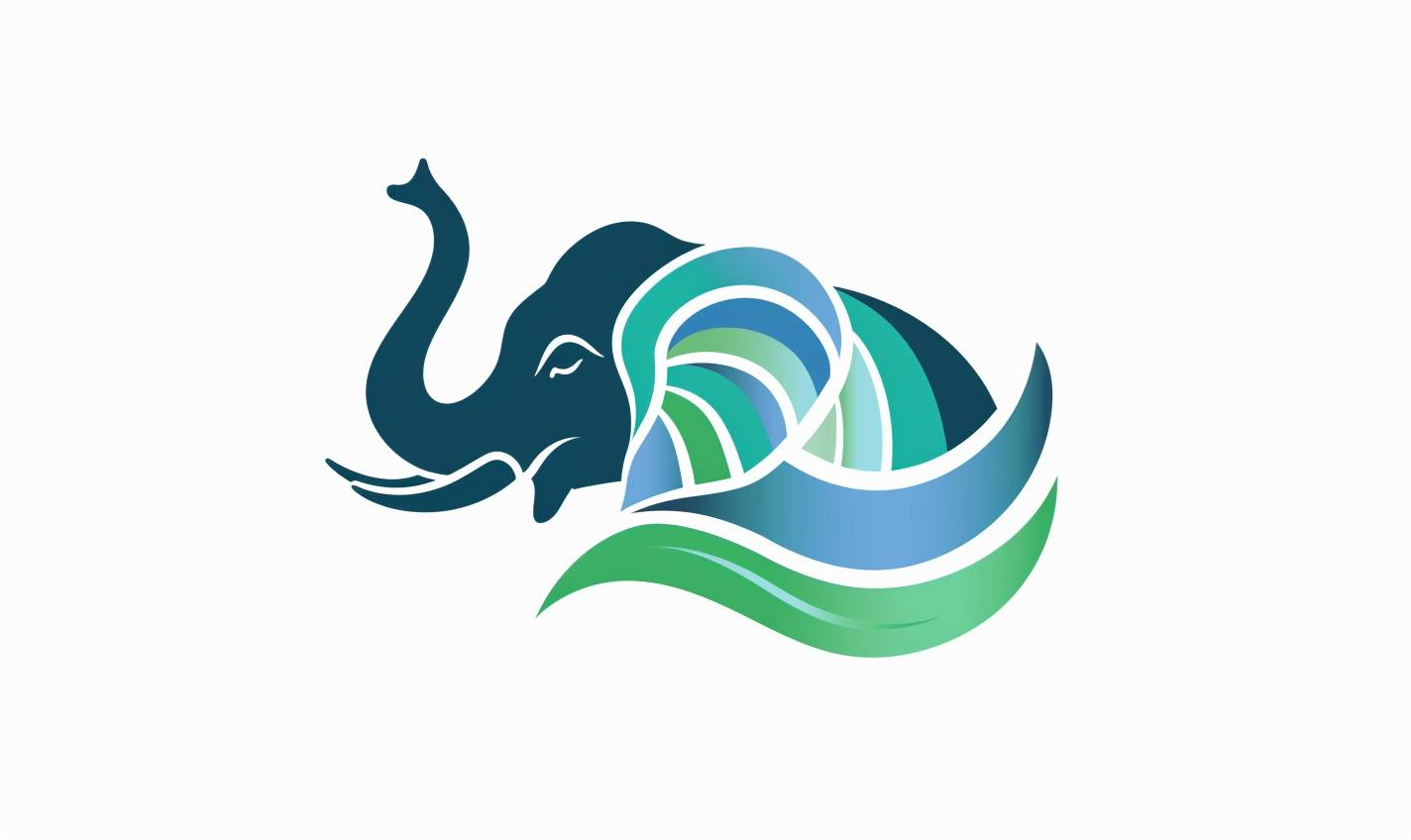 Logo with abstract style featuring blue and green wave elements and an elephant trunk
