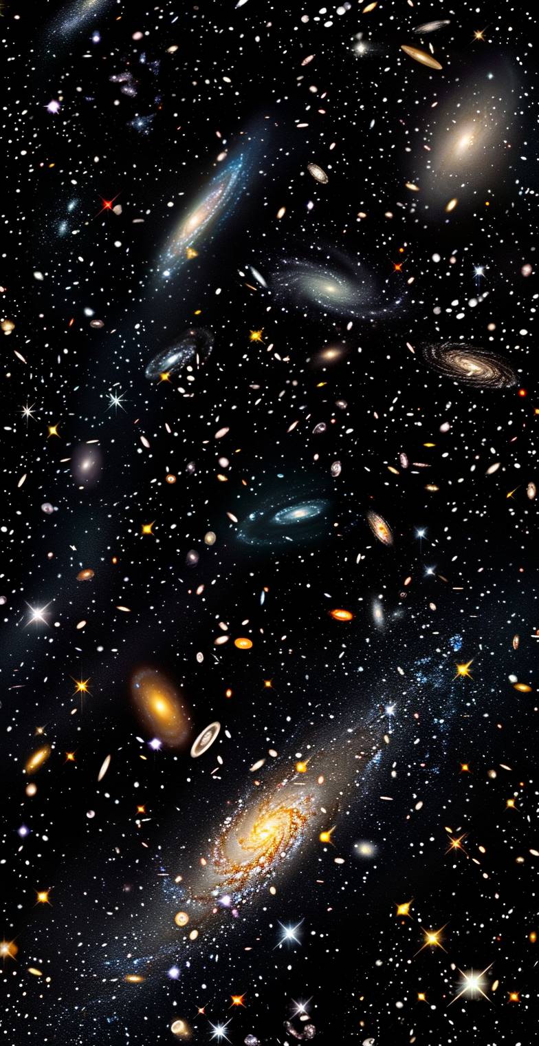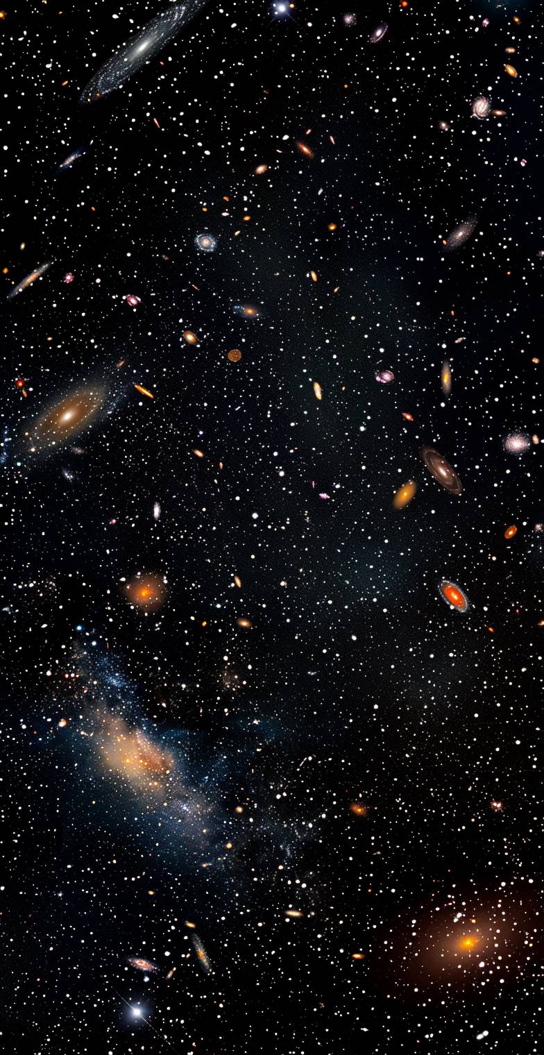 A black background with stars, a small number of distant galaxies and some bright galaxies in the upper left corner, a few more very far away in various directions. The overall effect is one of vast space, the sky full of countless tiny points of light against an infinite darkness. It's a striking contrast between focus on detailed star patterns and distance into infinity. The style should be realistic, with a touch of fantasy to make it feel otherworldly in the style of fantasy. --ar 33:64 --stylize 250 --v 6.0