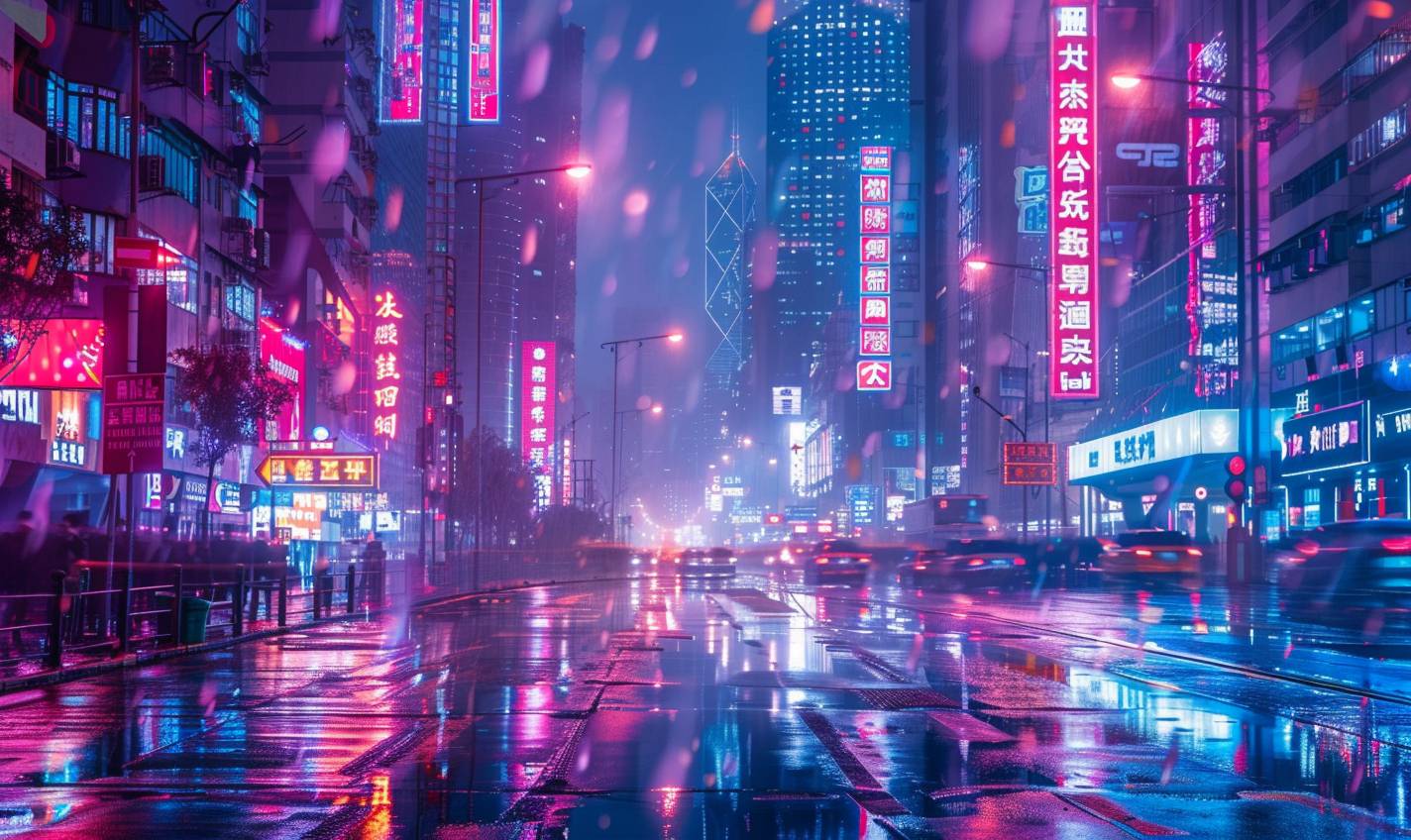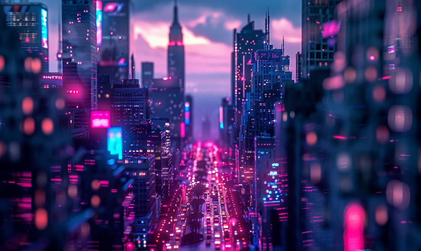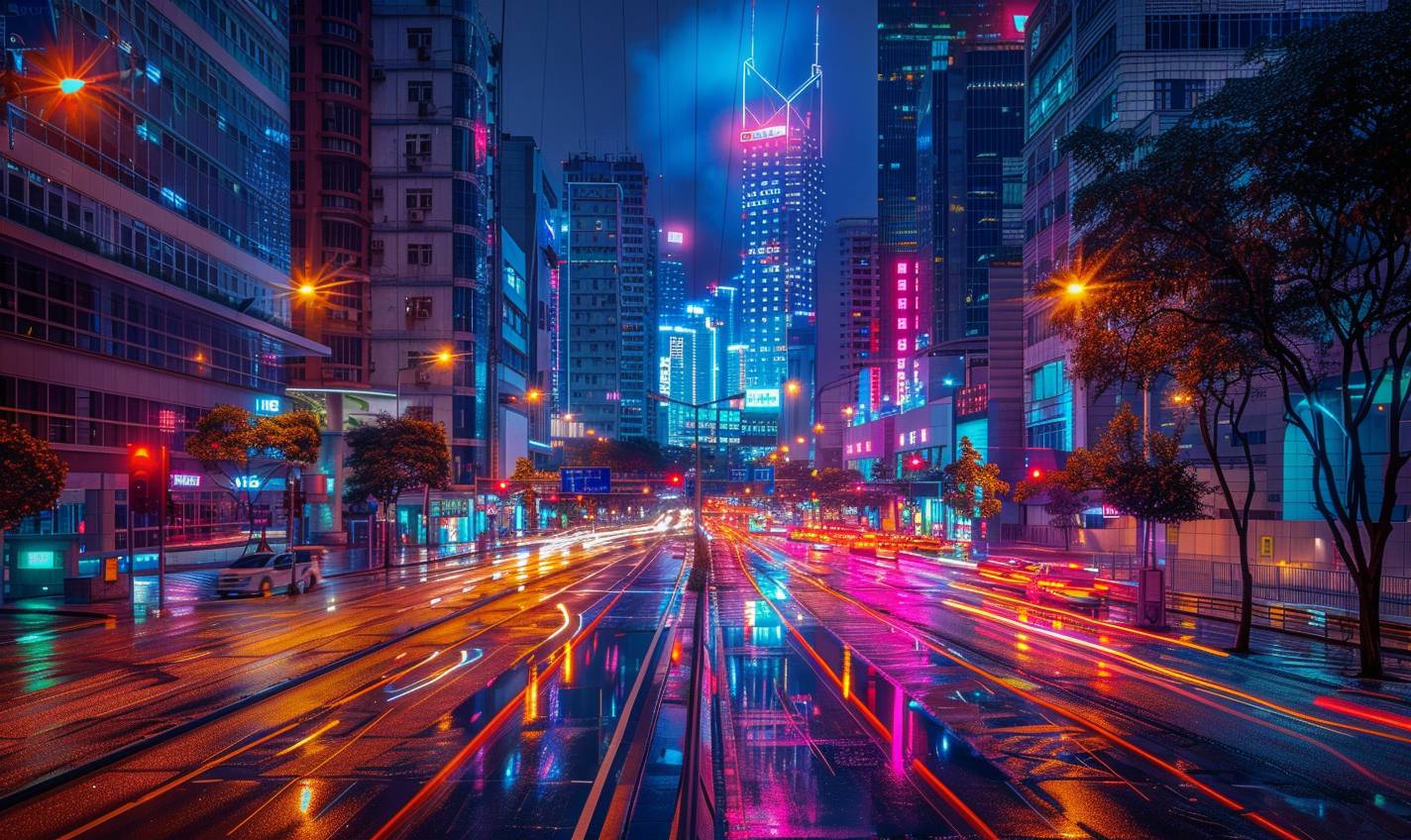 bustling city, neon lights, dreamlike glow, skyscrapers, high detail streets, soft surreal shadows, vibrant colors, urban exploration, reflective surfaces, Orton effect, Sony a7R IV, Meike 85mm F1.8, UHD image