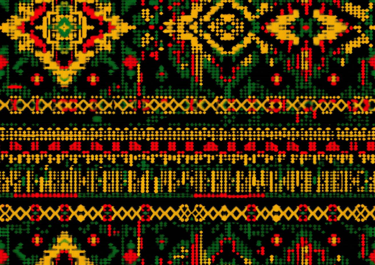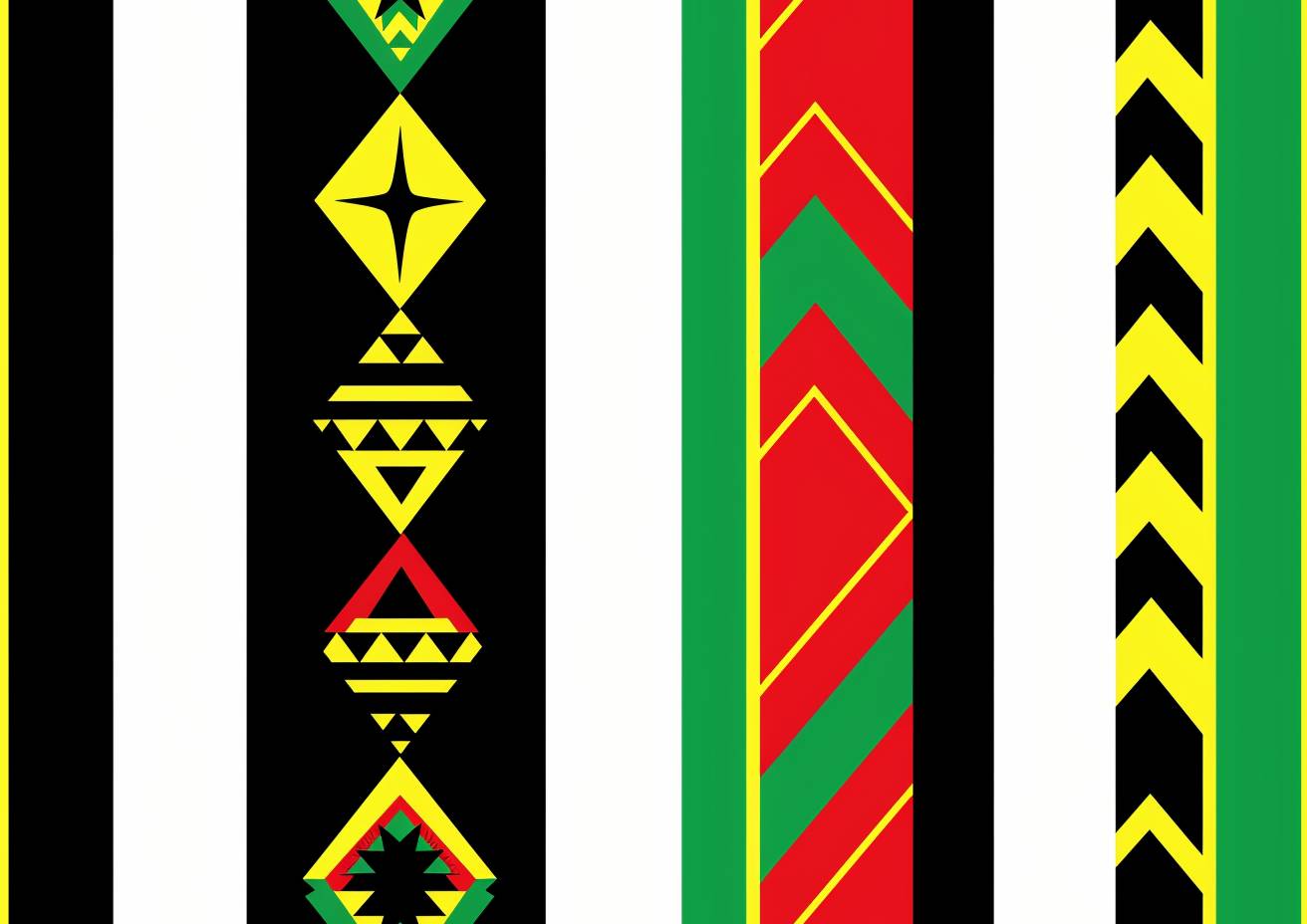 African tribal pattern, in the style of red, green, and yellow colors, in the style of African print fabric design