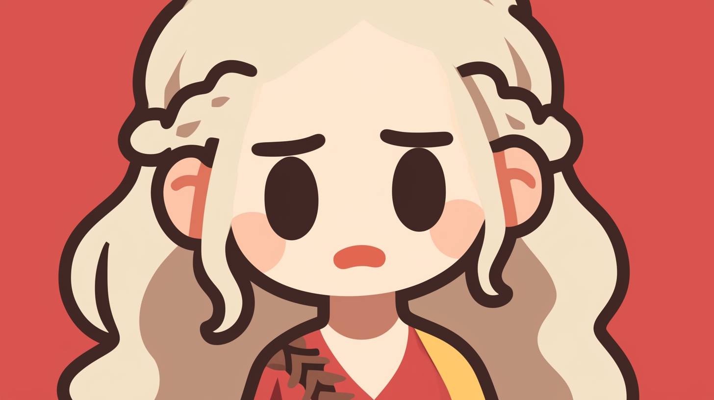 A simple drawing of Daenerys Targaryen, in the style of Allie Brosh with simple lines, flat colors and a stick figure, minimalistic, simple background --ar 16:9 --style raw --sref 2870177520 --niji 6