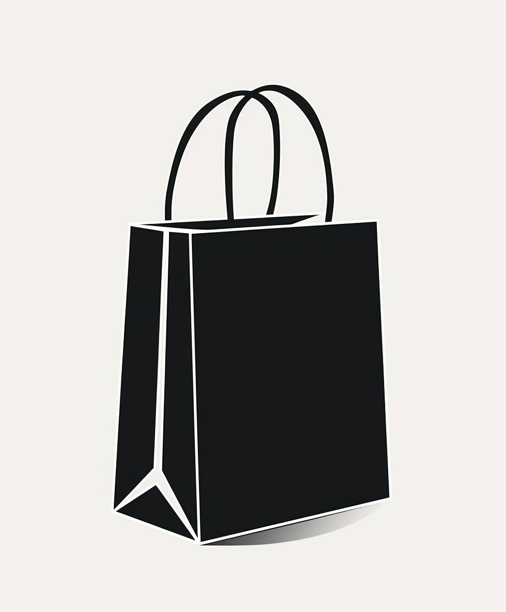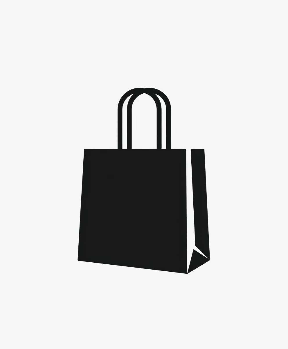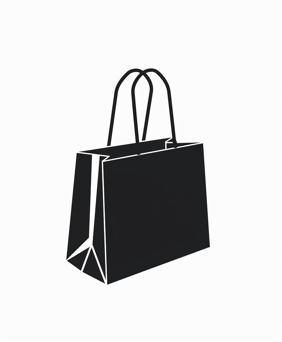Black and white shopping bag icon with minimalist design