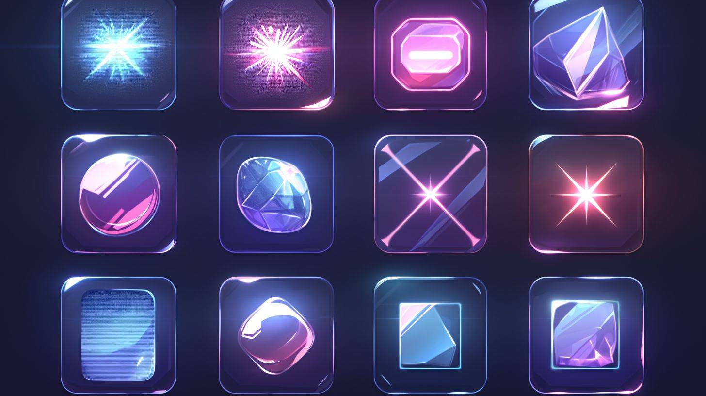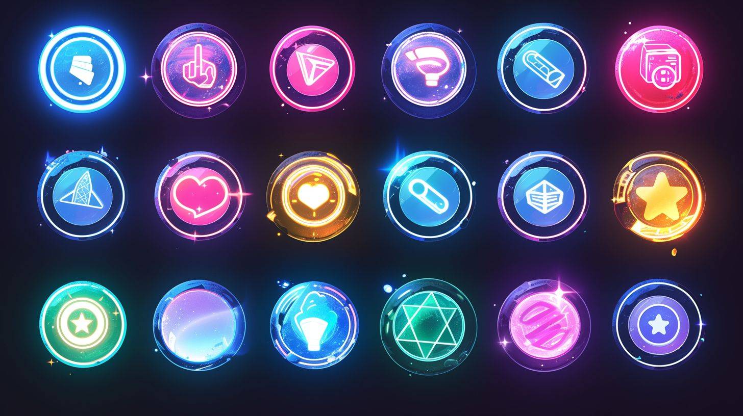 Outline icon set, frosted glass icon set, black and white, color, ui, ux, design, app, fresh design, graphic design, pinterest, dribbble, centered structure, super detail, ar 1:1. --ar 16:9 --niji 6