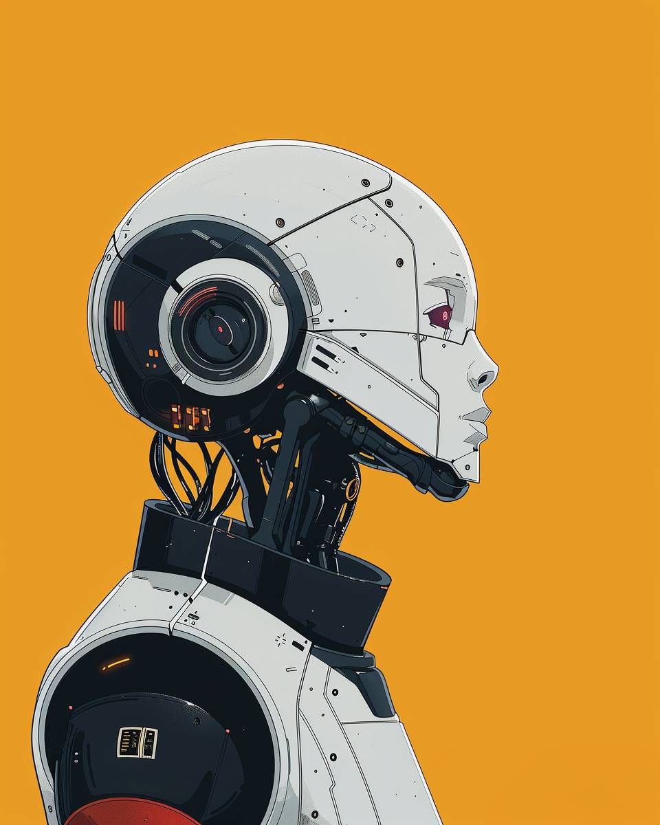 A beautiful robot woman, hand-drawn style, minimalist design.