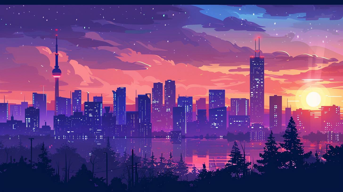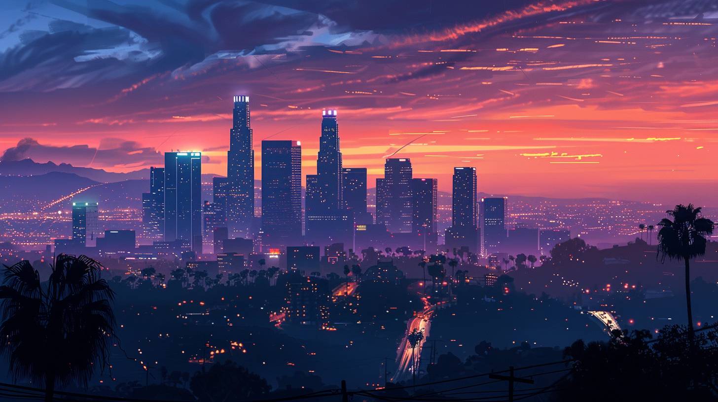 Illustration of a city skyline in GTA style