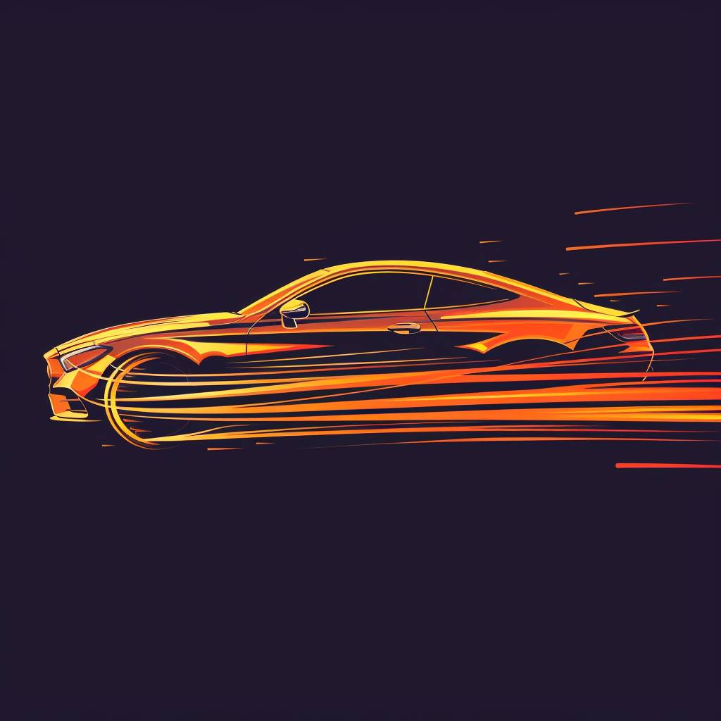 A pop art style digital logo featuring a sleek sedan from a diagonal angle, with flowing lines and vibrant orange colors. The background is minimalistic, emphasizing the car's dynamic and stylish design, hd quality, vivid style --ar 1:1 --v 6.0