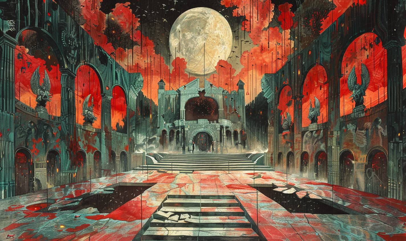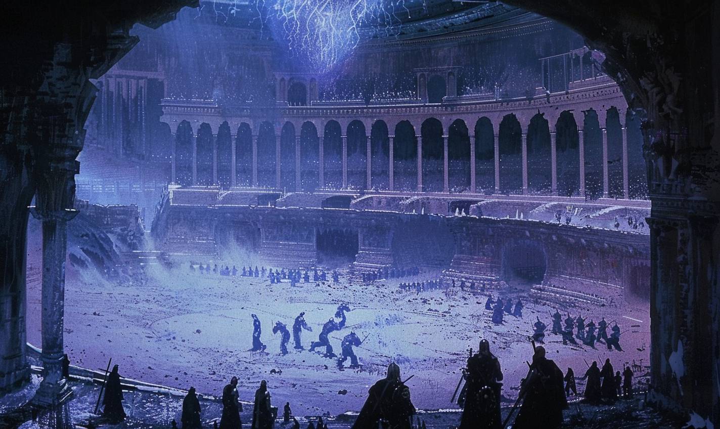 Ancient arena where spectral warriors clash