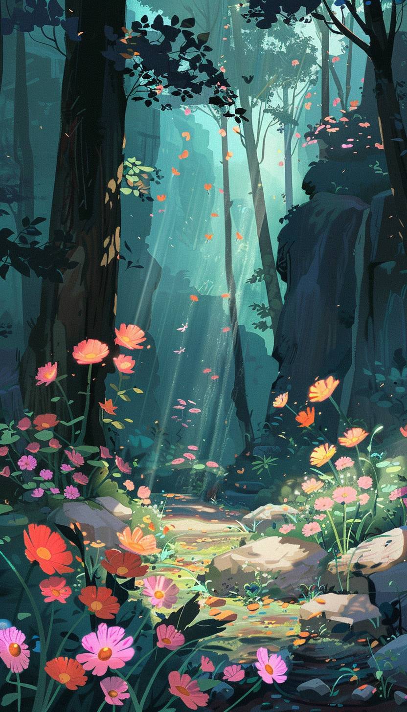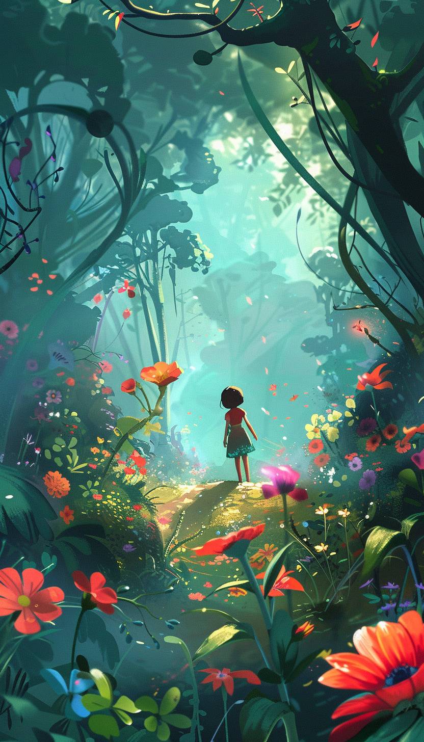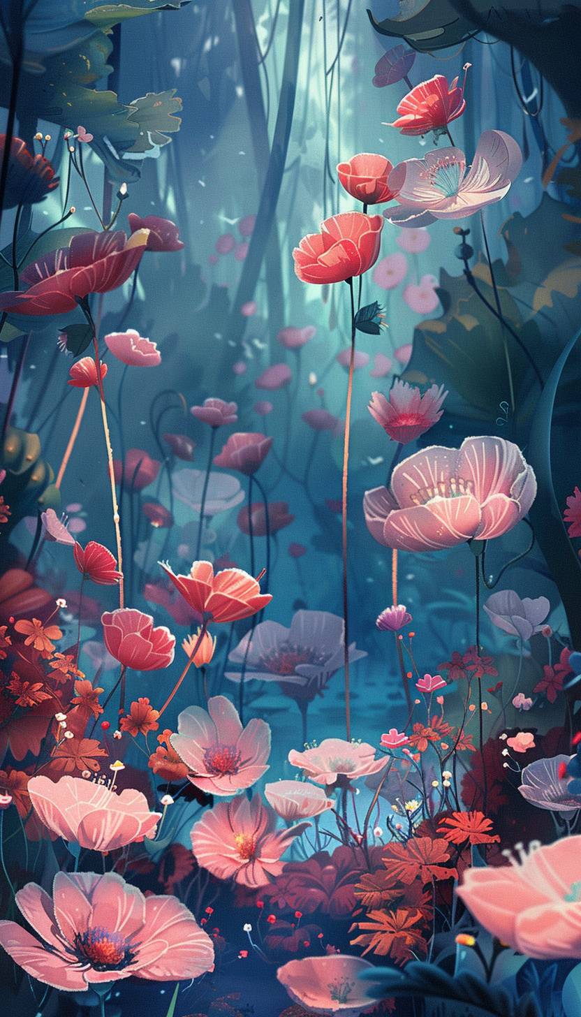 in style of Goro Fujita,Mystical garden blooming with enchanted flowers --ar 4:7 --v 6.0