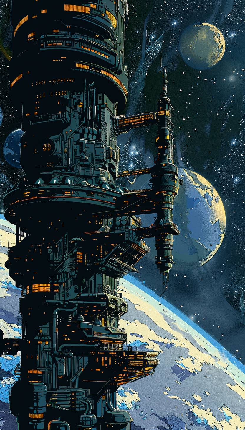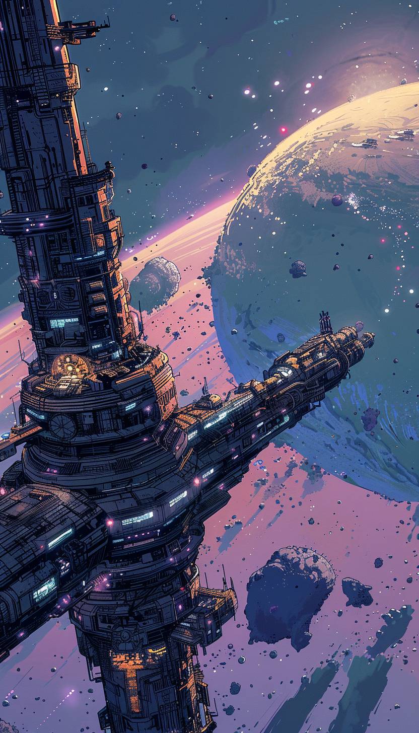 in style of Cliff Chiang,Space station orbiting a distant planet --ar 4:7 --v 6.0