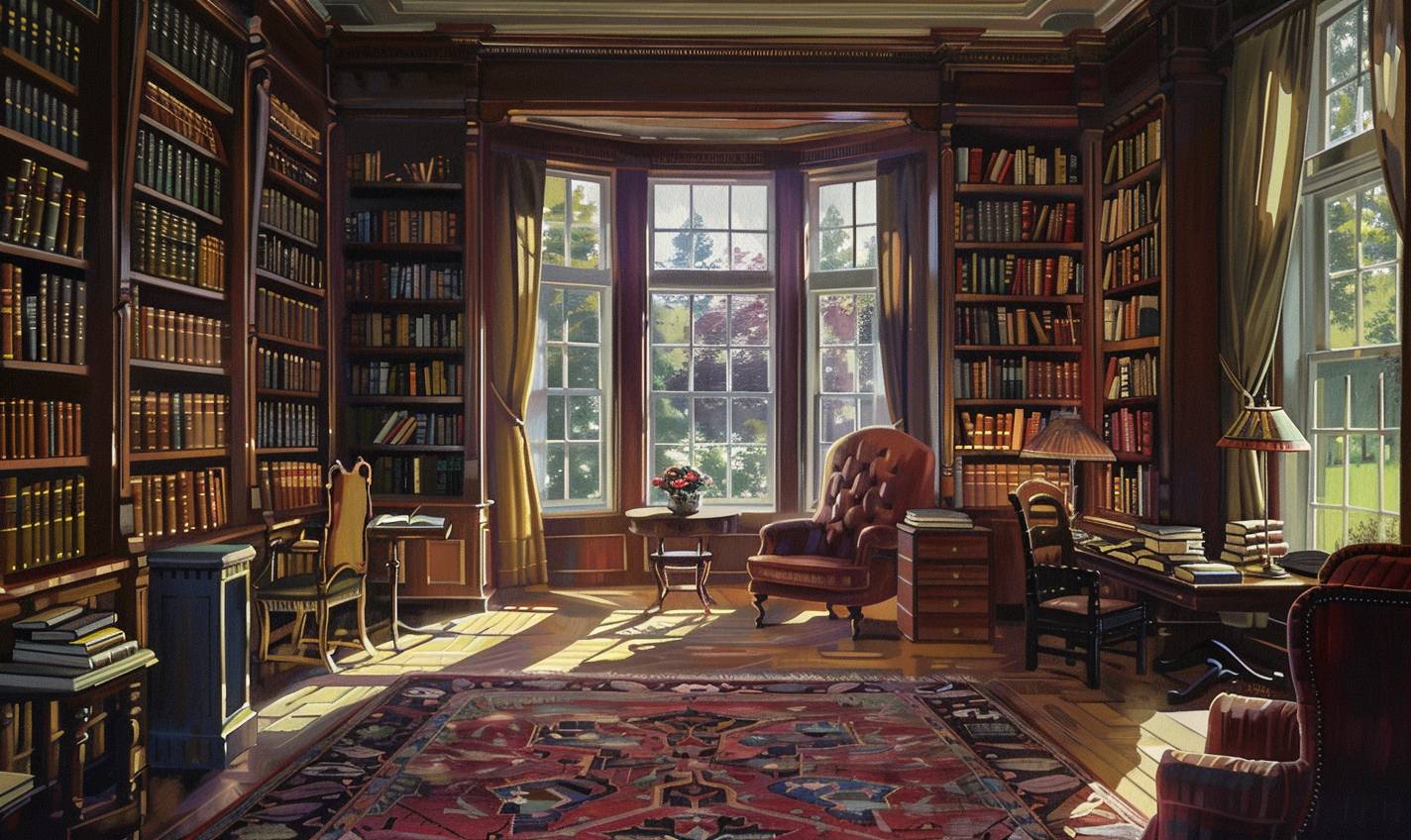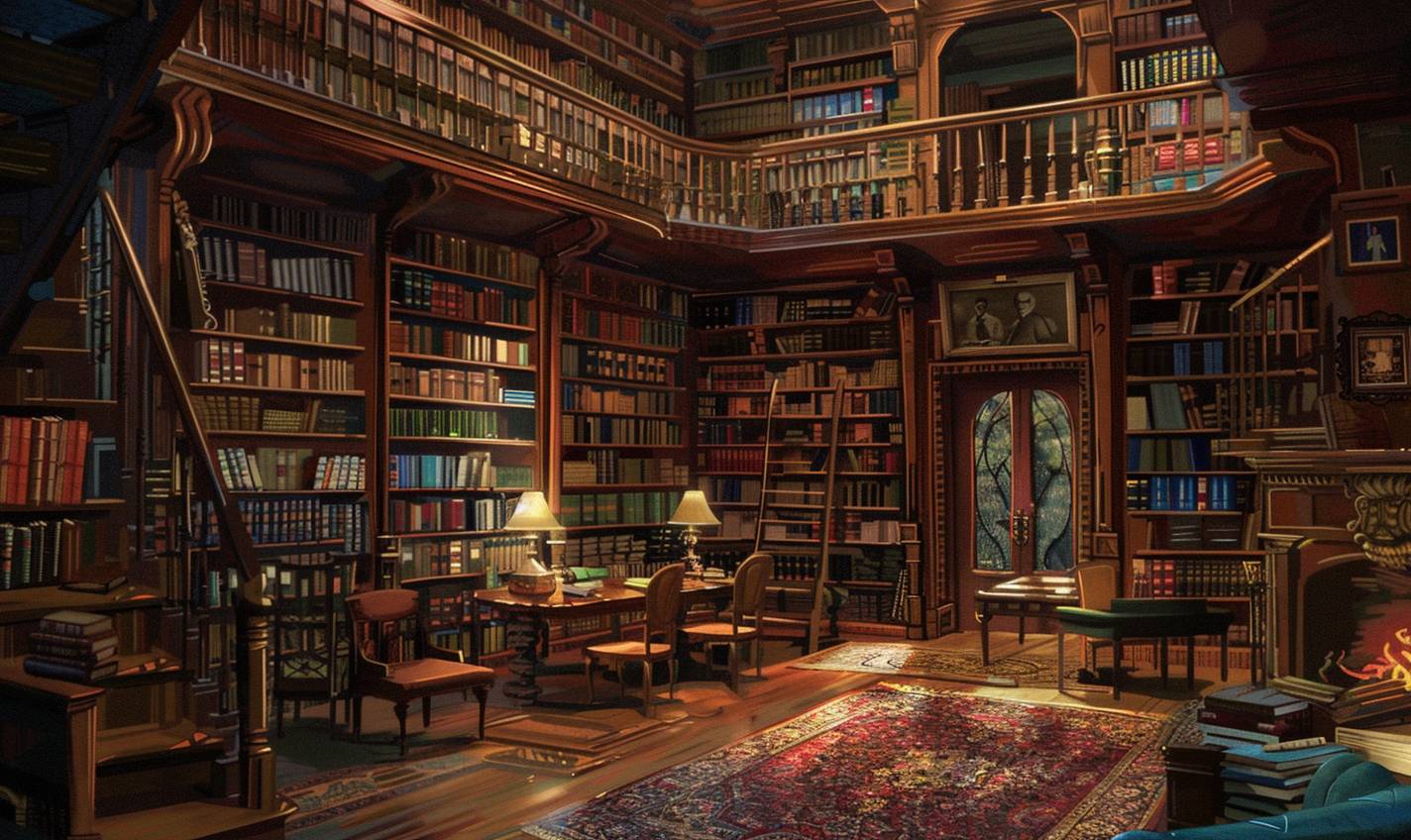 Timeless library with endless shelves of books