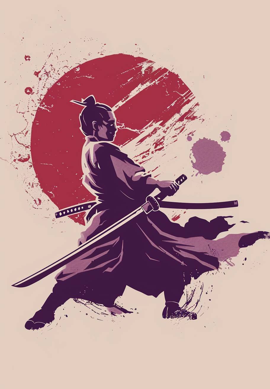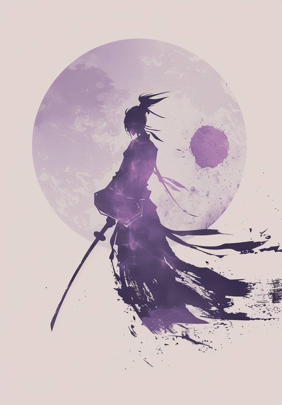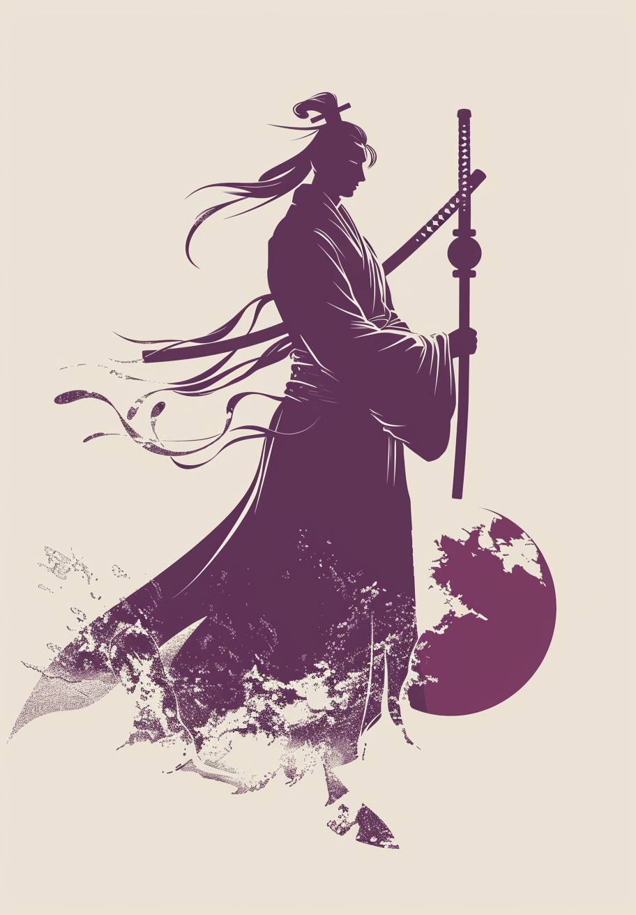 A logo incorporating science fiction and futurism, side view, close-up, best design, flat icon, pale violet, a Chinese swordsman with a wine-containing gourd.