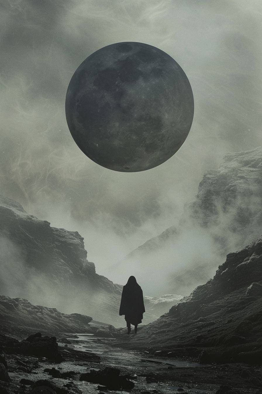 Lunar eclipse casting shadows across the land
