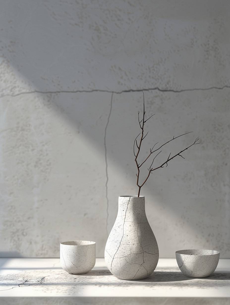 Crafts masterpiece, collected by the Metropolitan Museum, product beauty shot of Art white, Morandi Color Matching, porcelain Art, white, crackle, cracking, matte, Studio Lighting, Detail, Art, Award Winning, Light Color, Cinematic Lighting, Ultra HD, 3D Rendering.