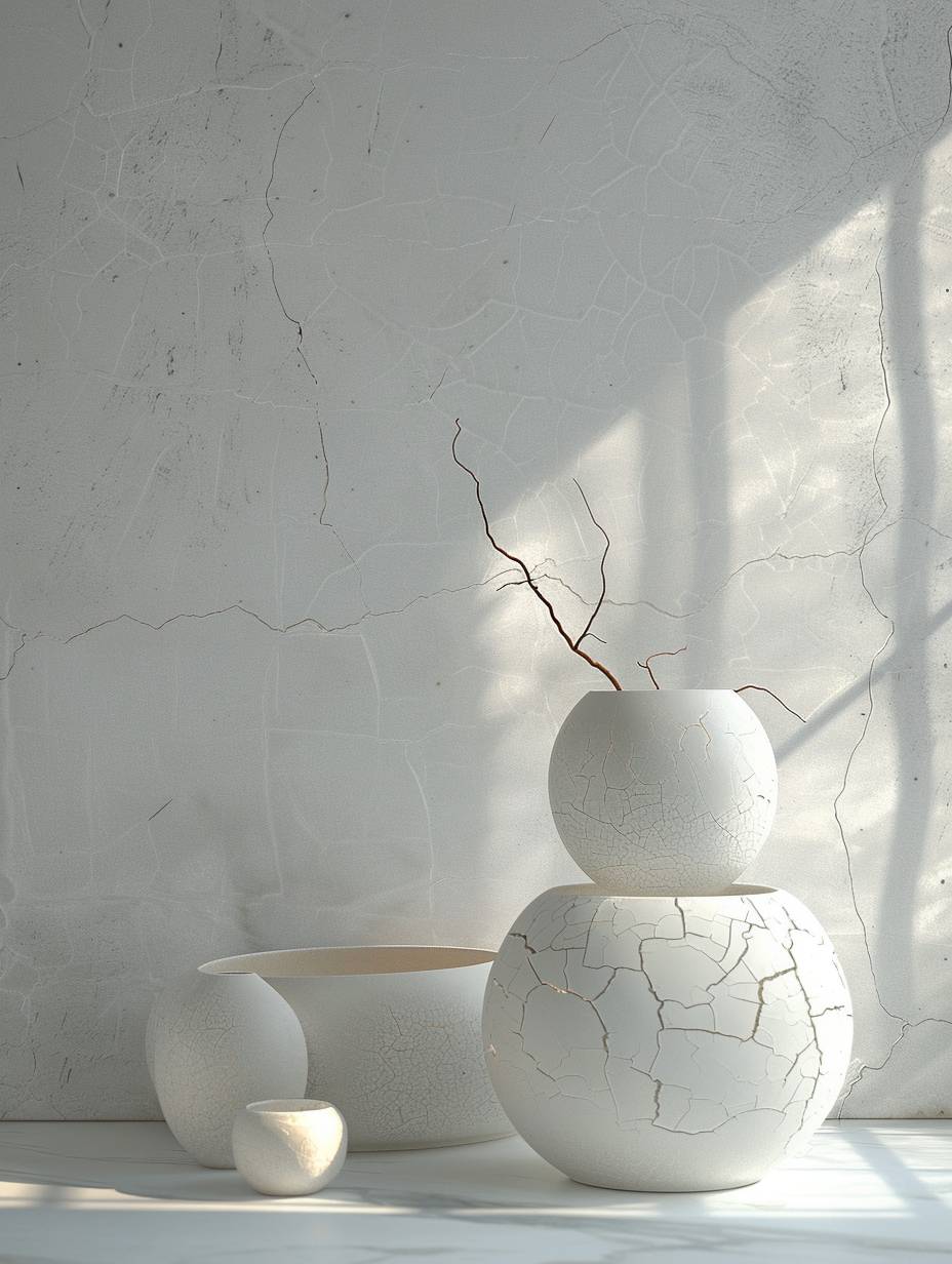 crafts masterpiece, collected by metropolitan museum, product beauty shot of Art white, Morandi Color Matching, porcelain Art porcelain, white, crackle, cracking, matte, , Studio Lighting, Detail, Art, Award Winning, Light Color, Cinematic Lighting, Ultra HD, 3D Rendering, --ar 3:4 --v 6.0