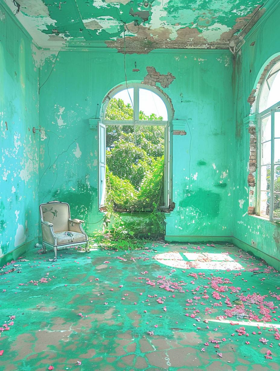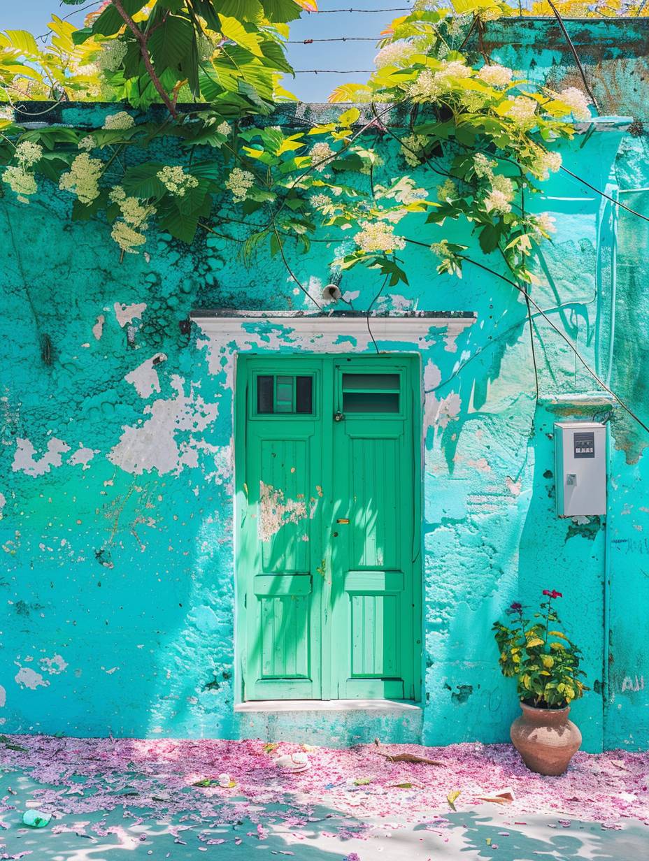 35mm photo in an vibrant environnement, Persian-green dominant color, blue-ish green --ar 3:4 --style raw --personalize b1oftln --stylize 500 --v 6.0