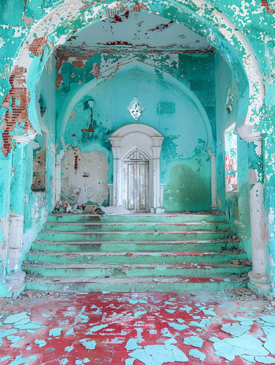 35mm photo in a vibrant environment, dominant Persian-green color