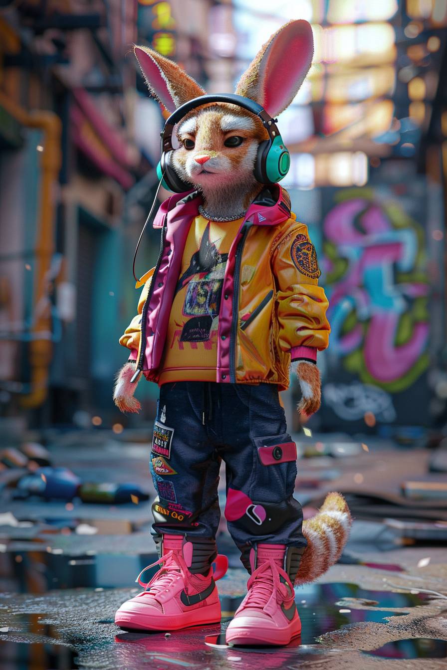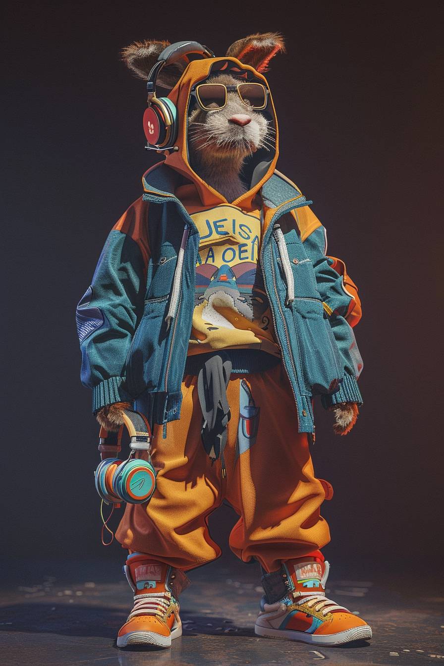 full body 3d render [animal] | childhood arcadias style | intricate,dressed in urban streetwear | fashion and headphones | vivid colors, ultra detailed | unreal engine render --ar 2:3 --v 6.0