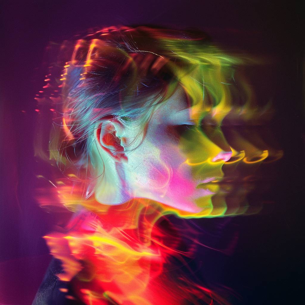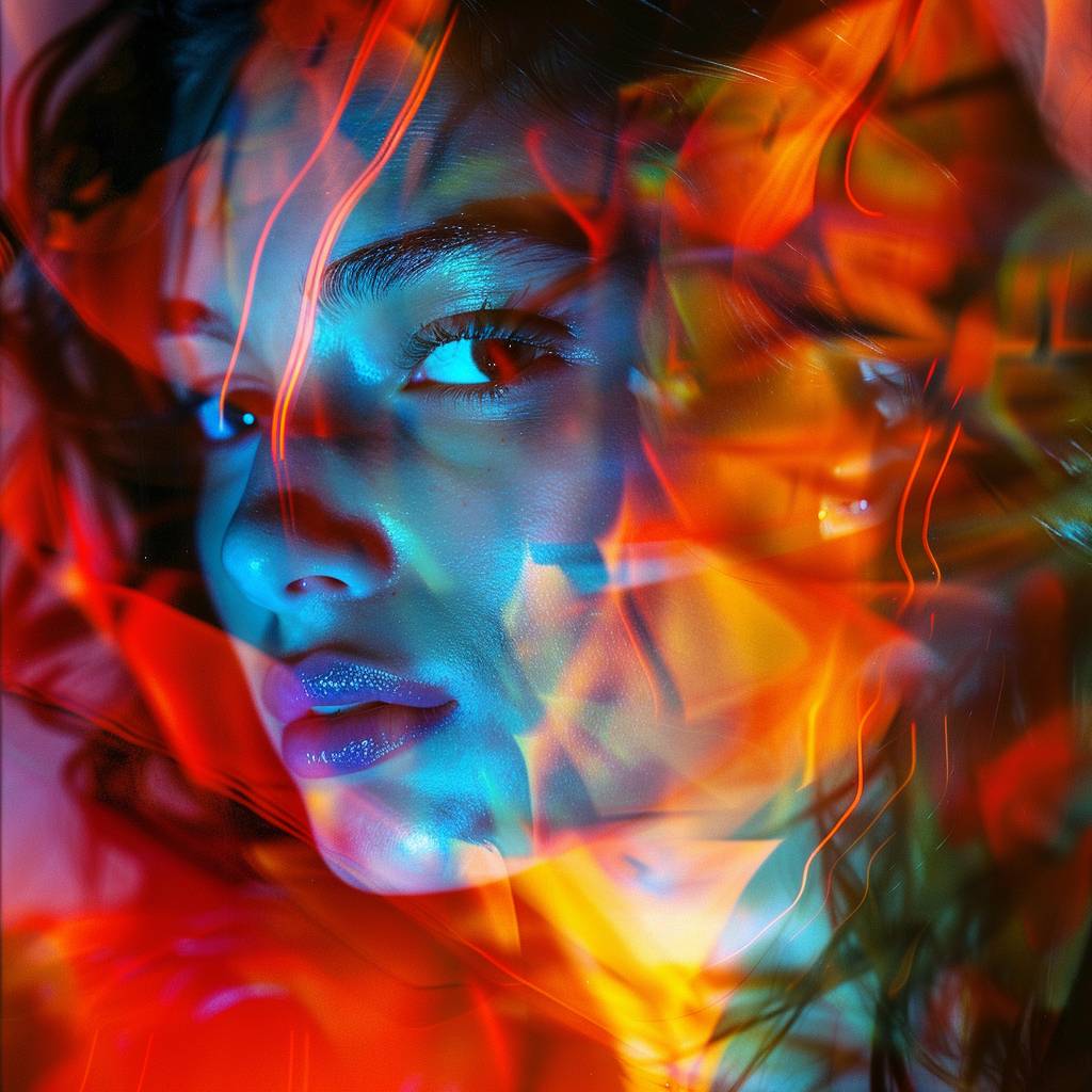 a photography of [SUBJECT] , in the style of multicolor double exposures, vibrant colors, emotive, bright colored, negative colors, studio photography, color light --v 6.0