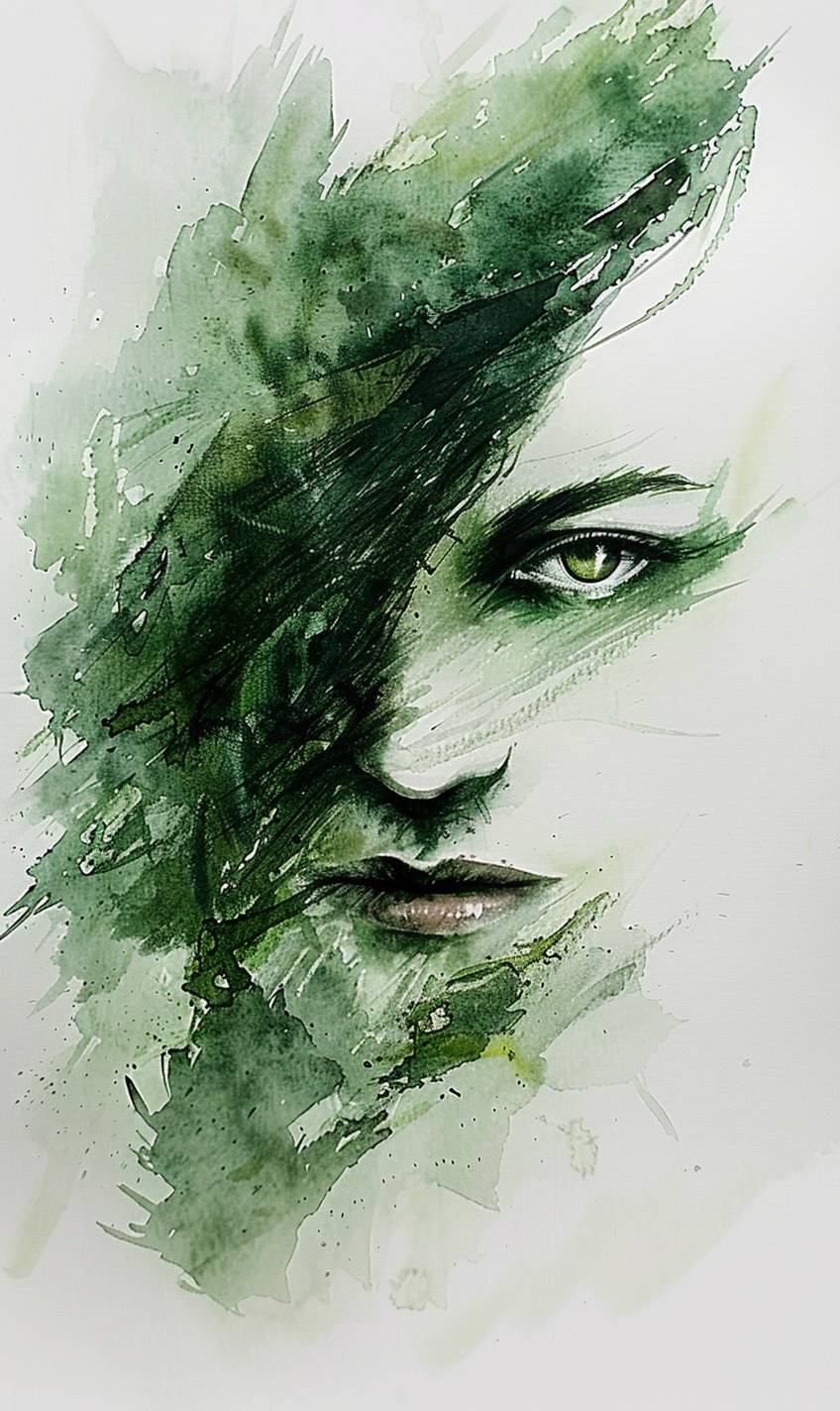watercolor painting, an extremely delicate and beautiful, extremely fine, fine line illustration, a sylph, wind effects, melancholy look, pensive look, attentiveness, lonely