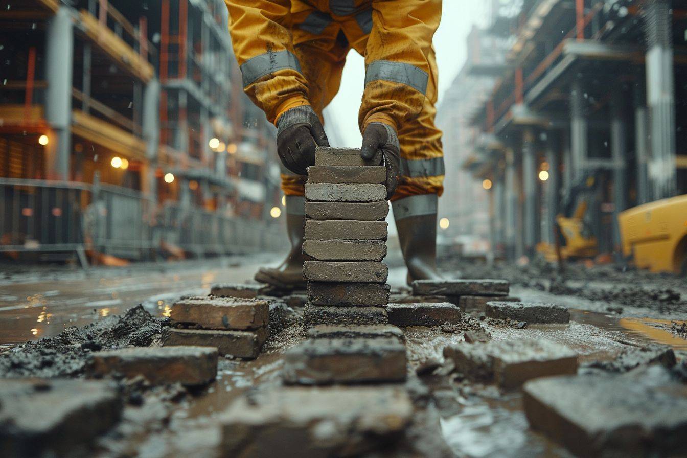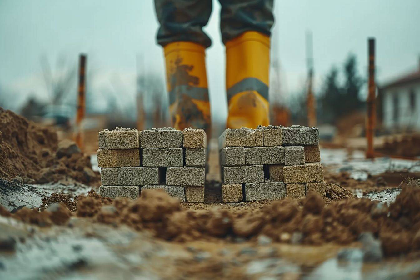 Construction worker laying bricks