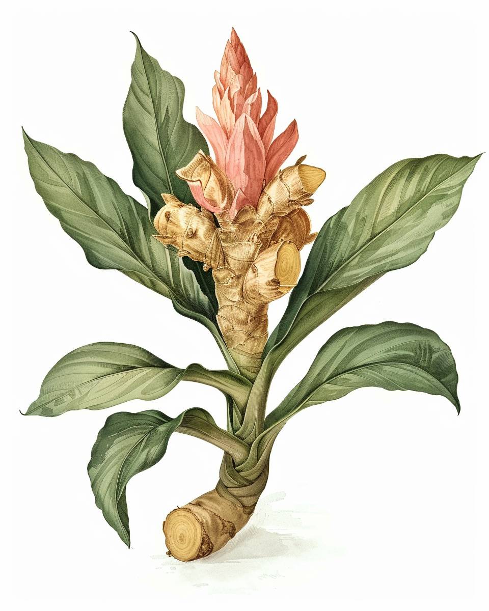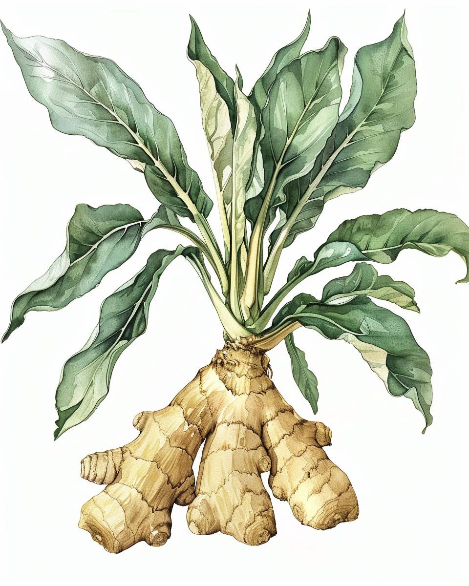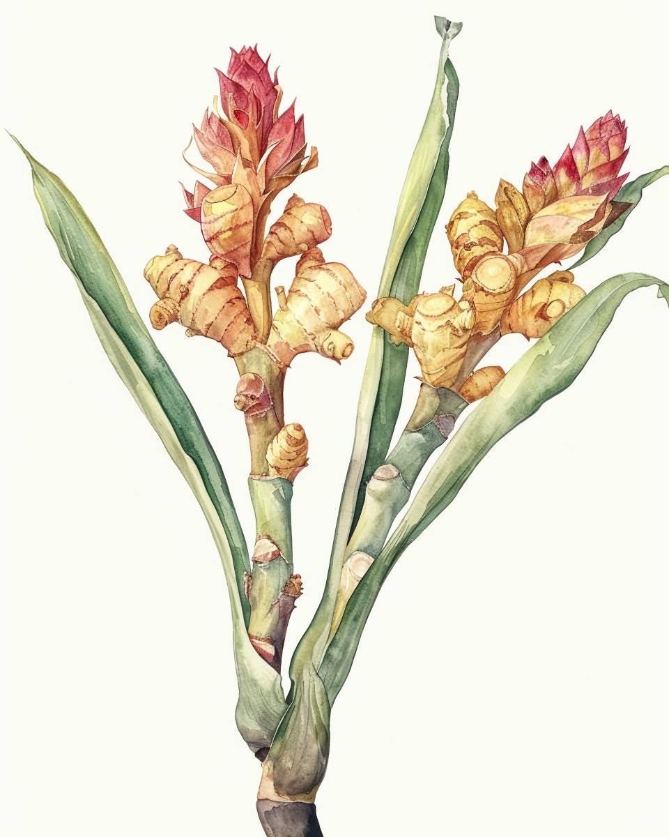 Vintage watercolor botanical illustration of ginger root