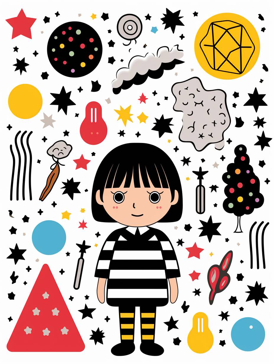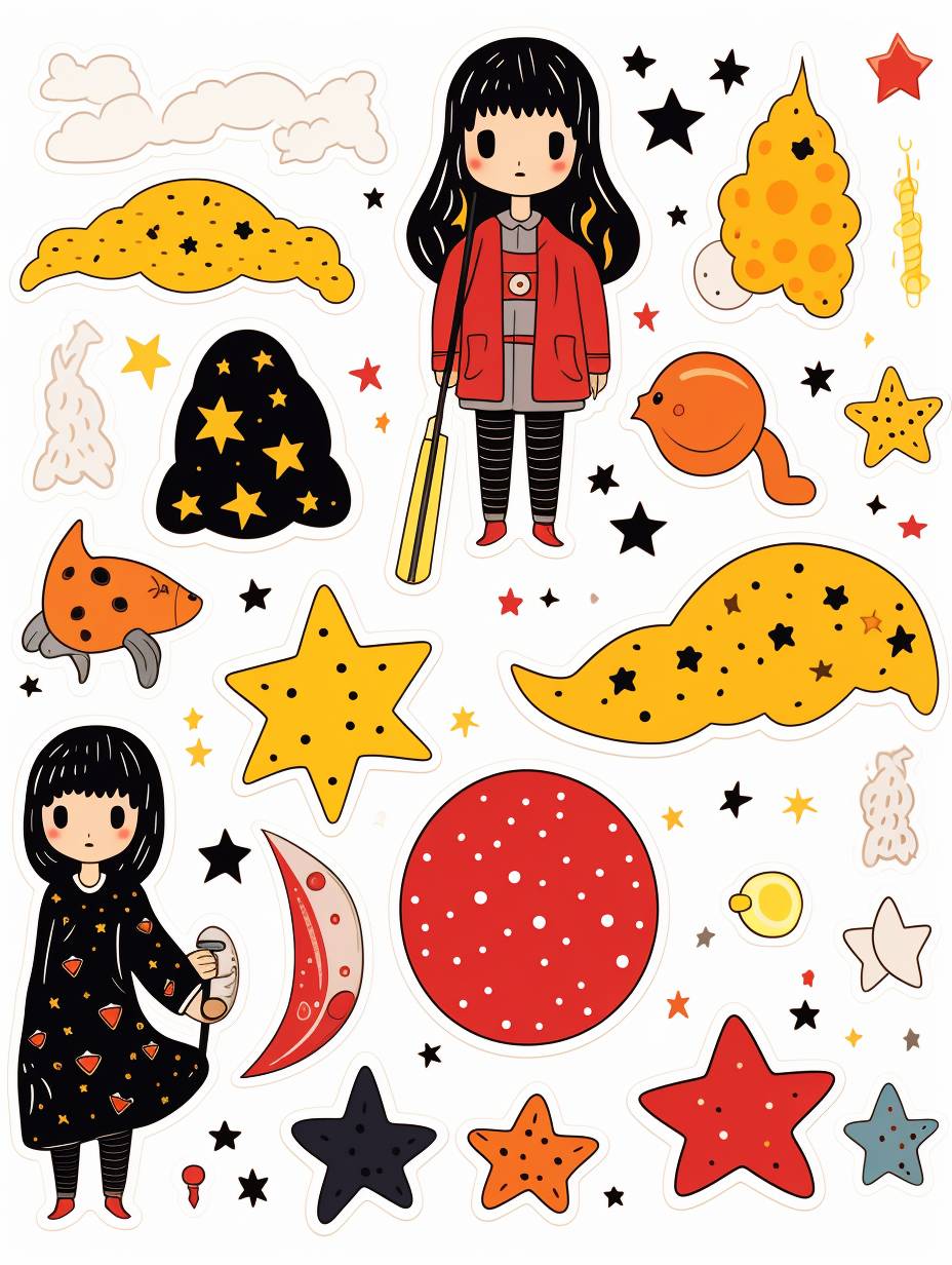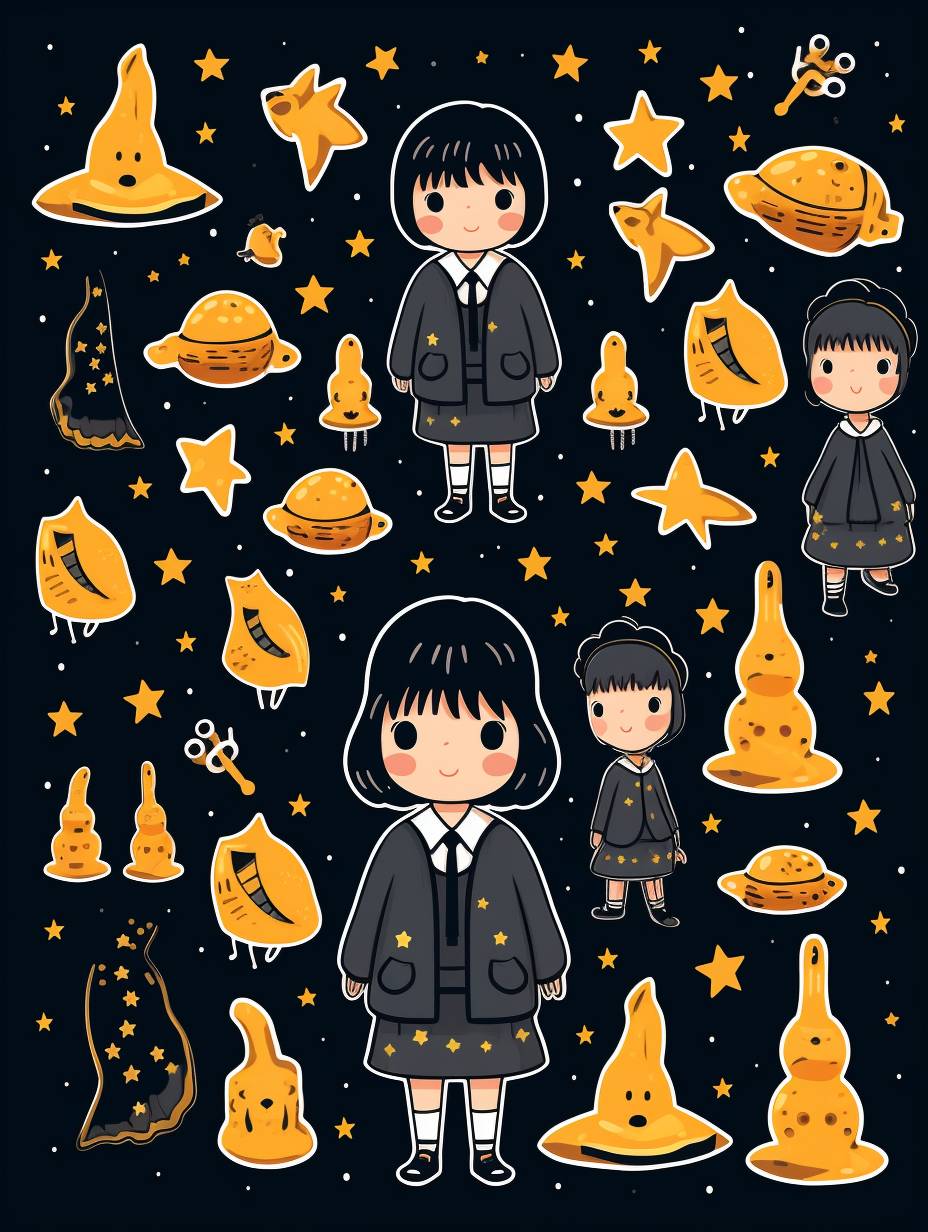 Charming vector set of Creating Harmony themed stickers designed to delight children, featuring adorable Creating Harmony in various poses, in the style of Harry Potter, as a Yayoi Kusama --ar 3:4 --v 5.2
