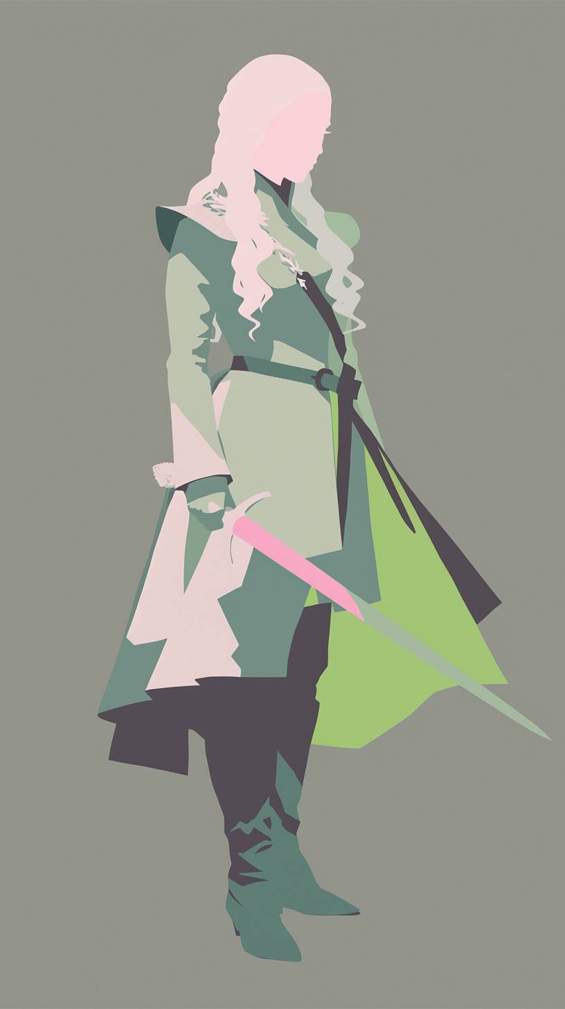 A simple drawing of Daenerys Targaryen, in the style of Allie Brosh with simple lines, flat colors and a stick figure, minimalistic, simple background.