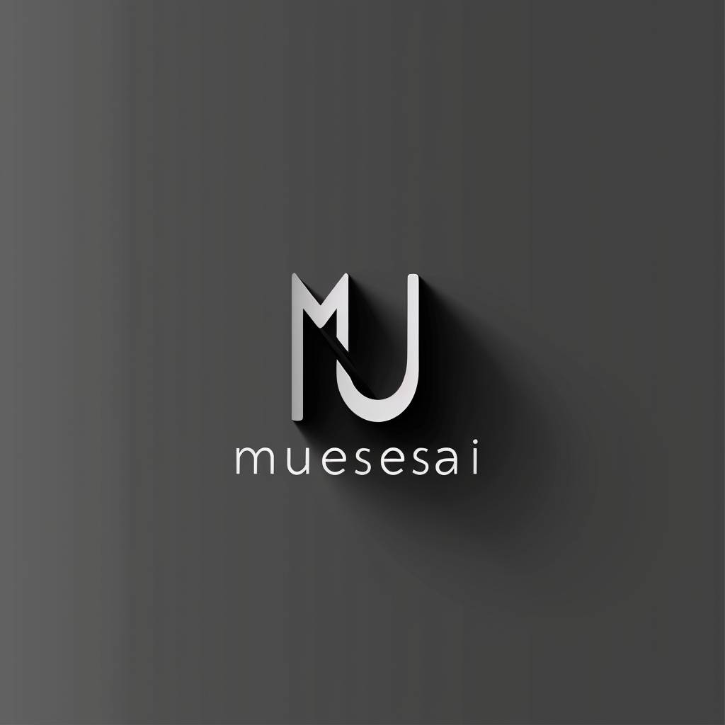 a vector logo with the text "muesesai". The logo is minimalistic, black and white, and should have a 3D shape element. The logo is for a 3D company --ar 1:1 --stylize 50 --v 6.0
