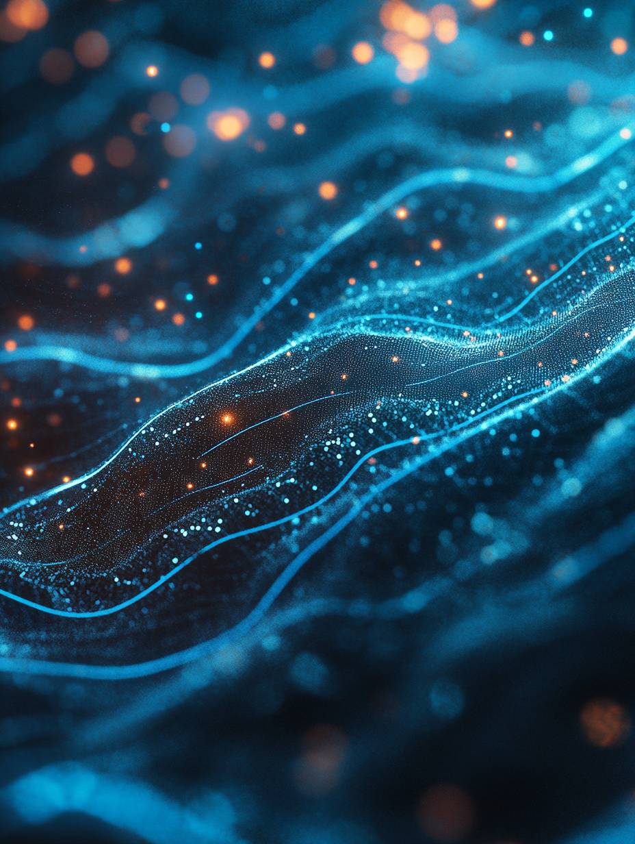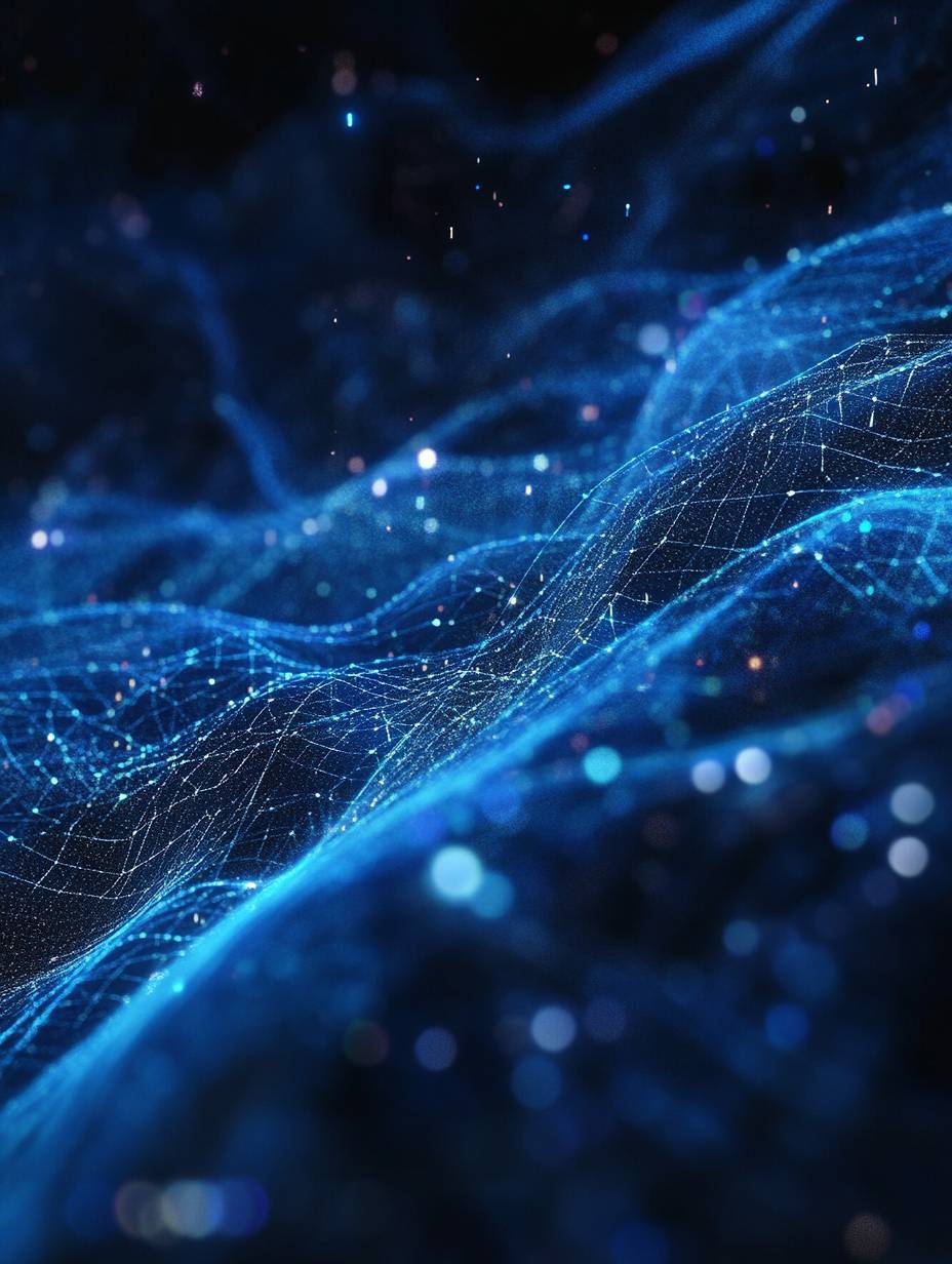 With data charts as the theme, data charts, blue tones, technological sense, lines, particles, ambient light, mysterious atmosphere, FUI, 3K