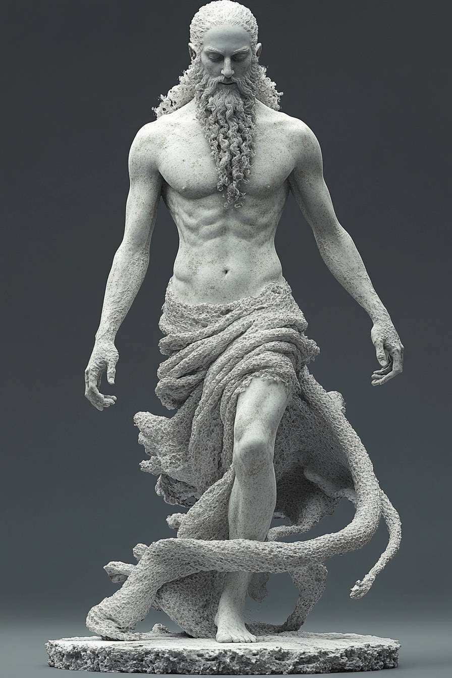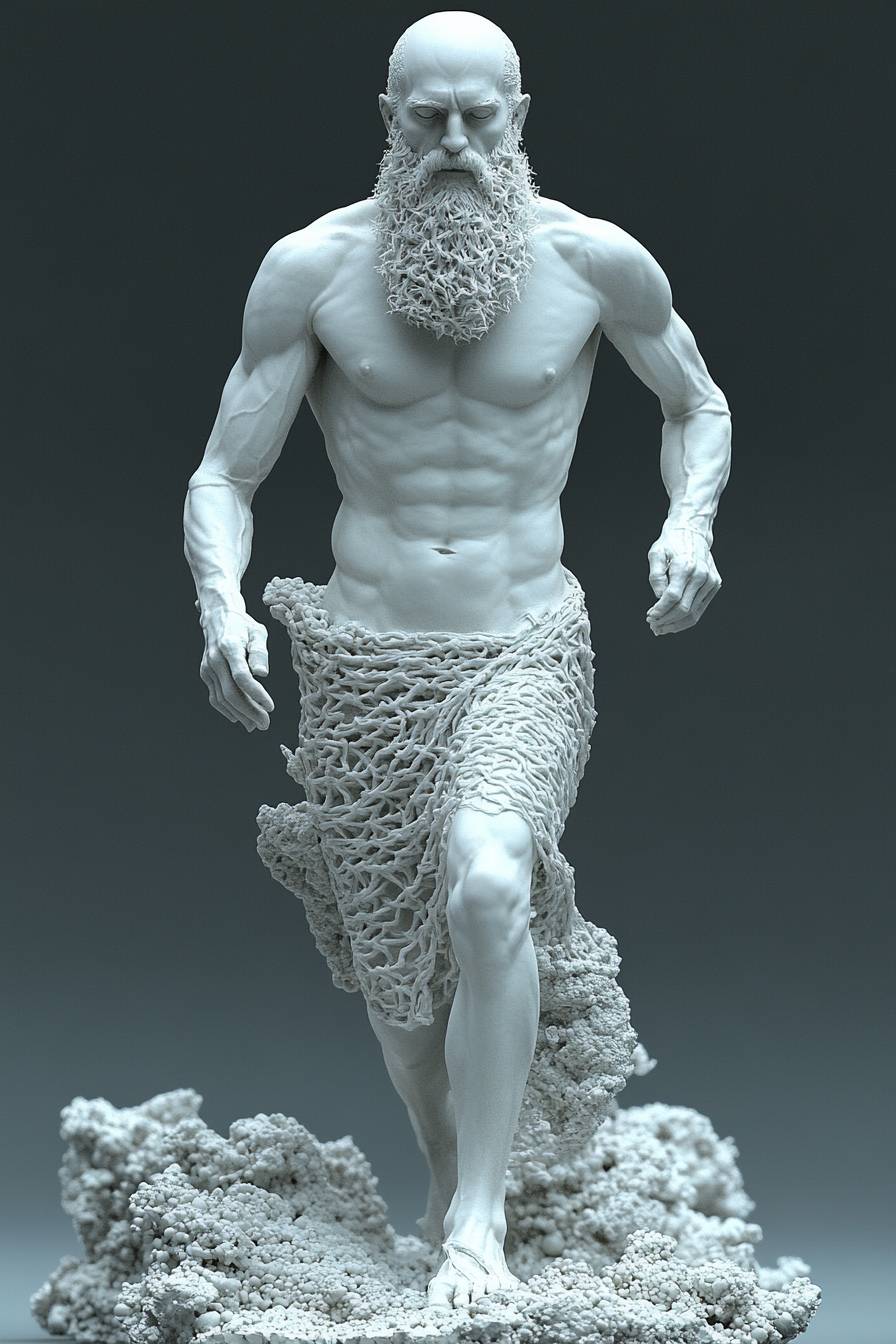 A god statue, full body view, Running --sref 7036 --stylize 1000 --ar 2:3 --v 6.1