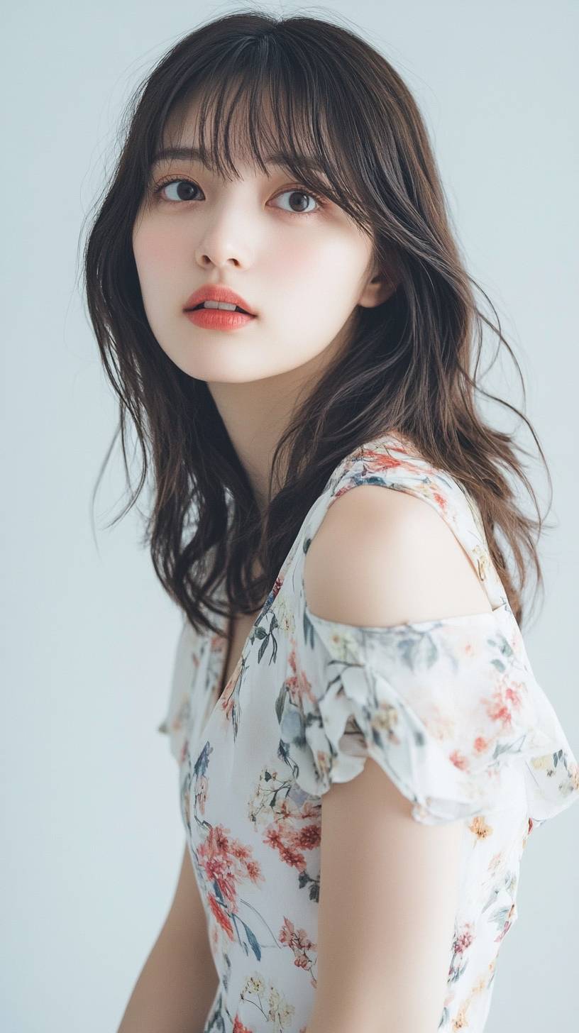 Simple white background, Nogizaka46, dress, beautiful and cute Japanese woman --ar 9:16 --v 6.1