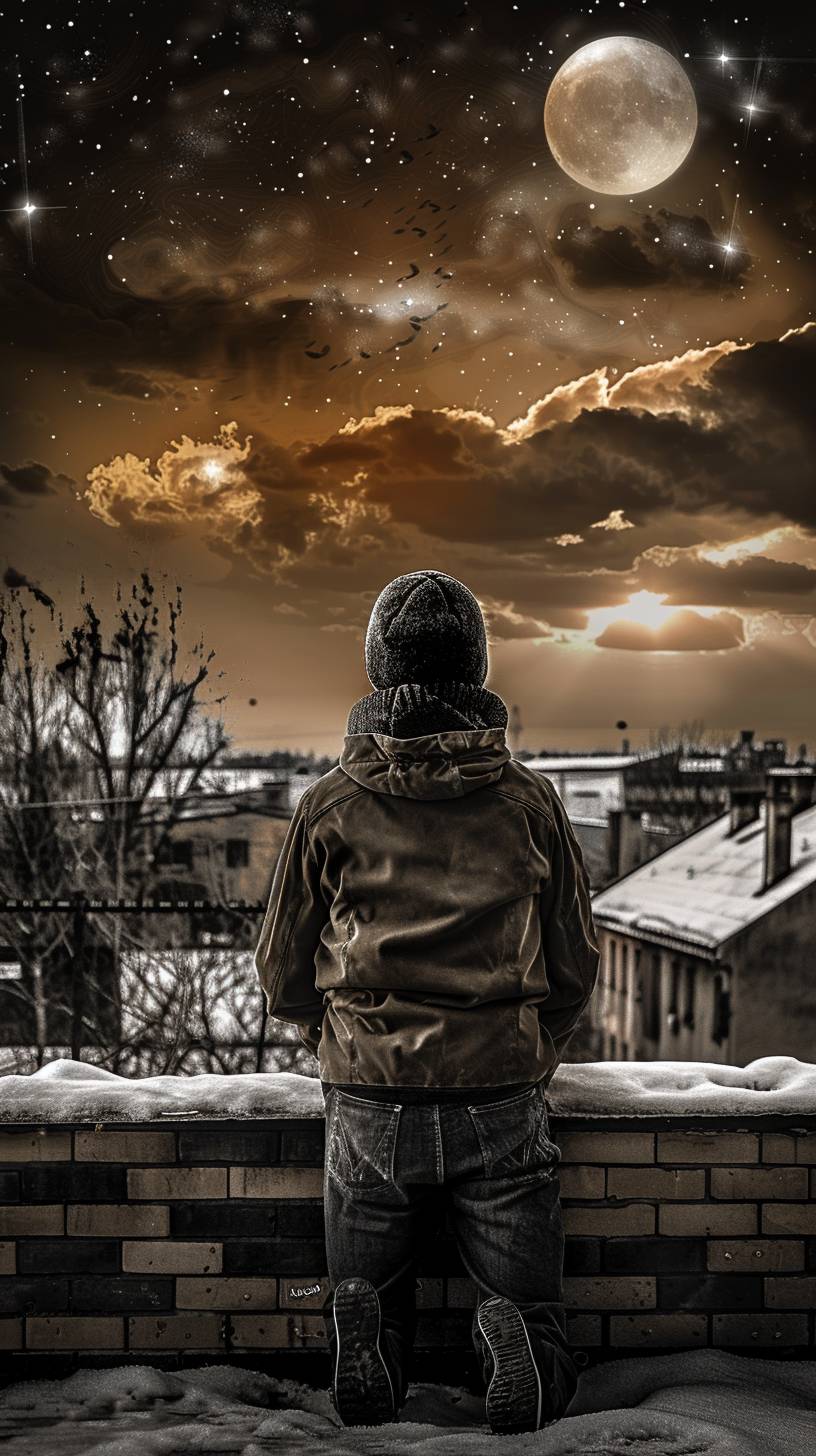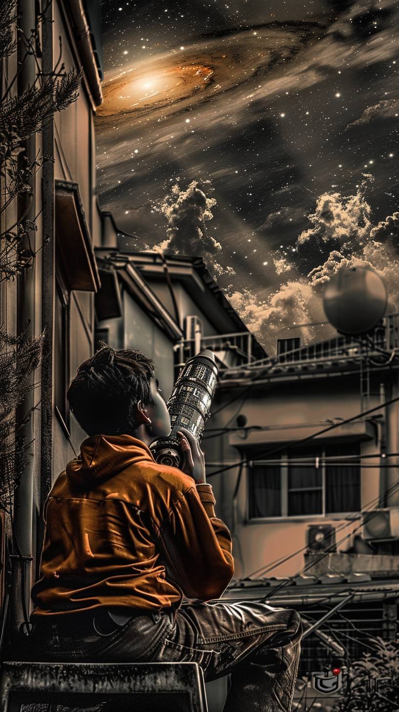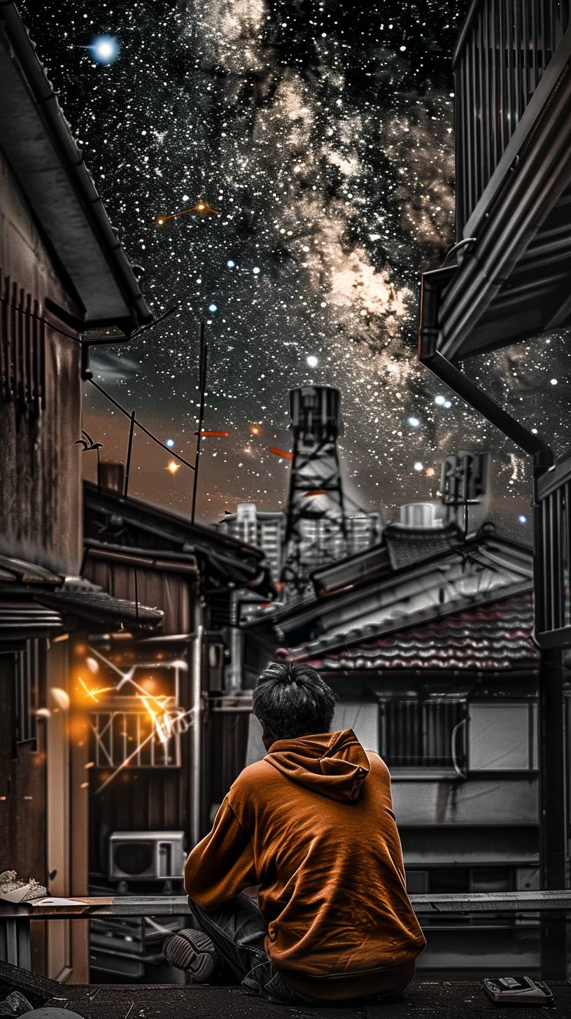 Haruto is stargazing on a rooftop.