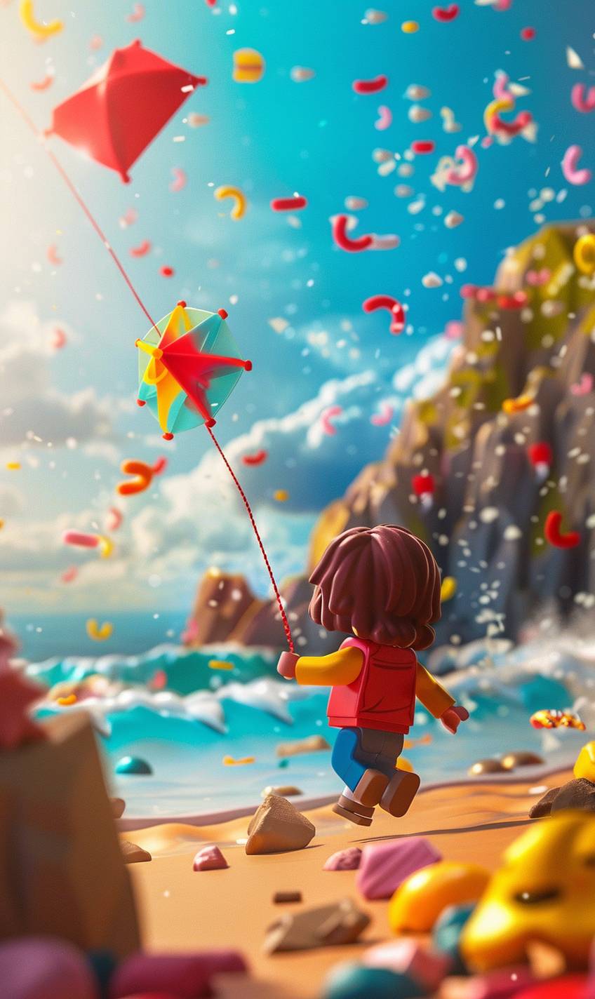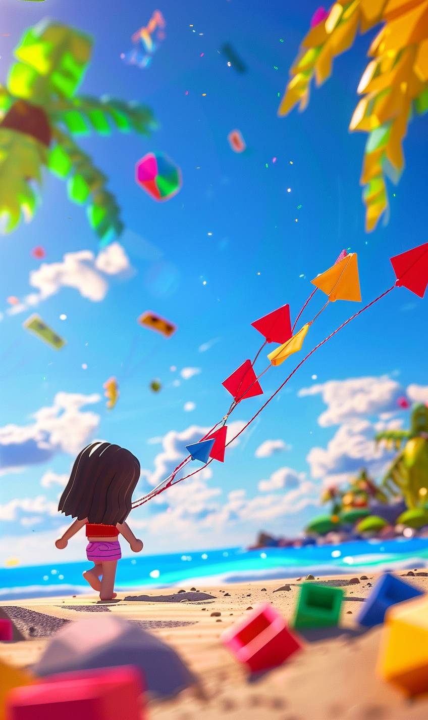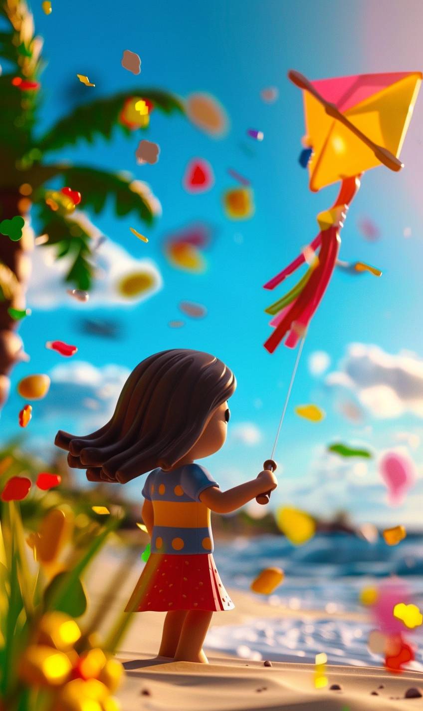 Aoi is flying a kite on the beach.