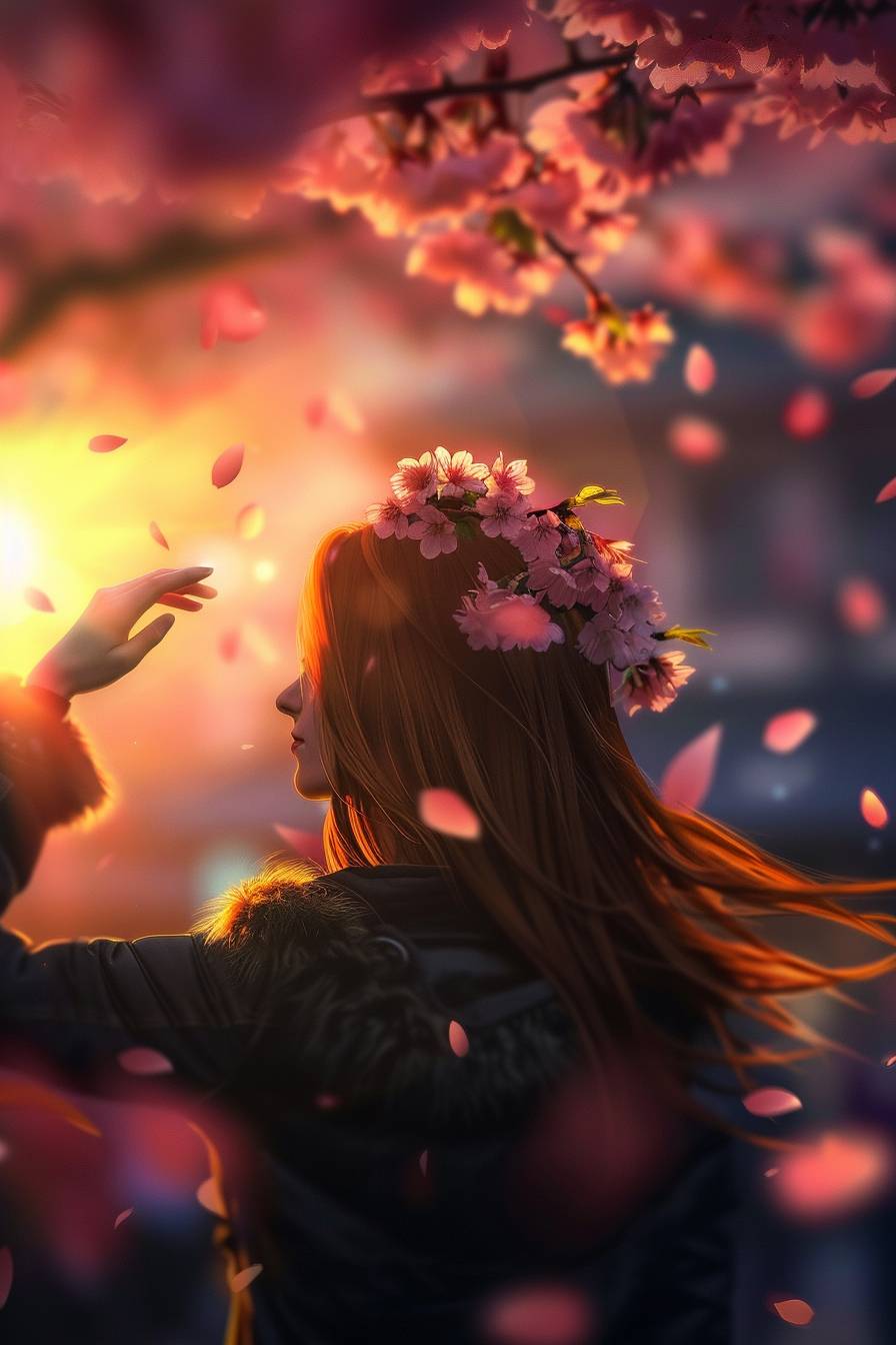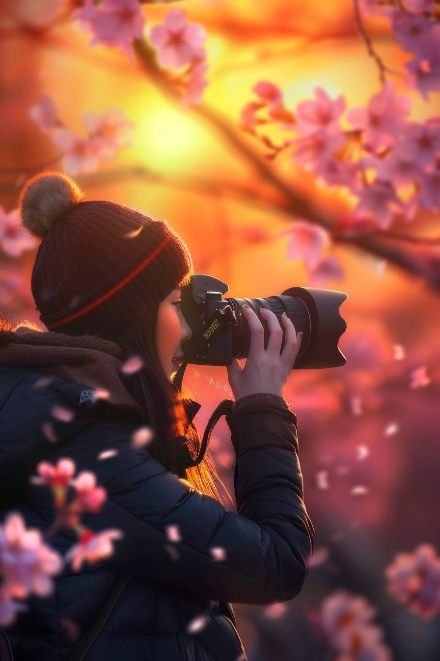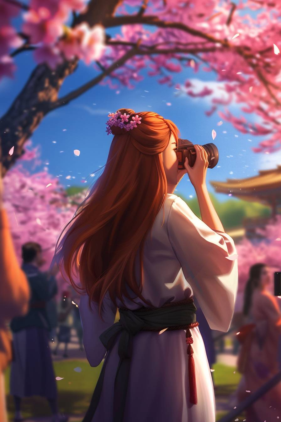 Aya is photographing cherry blossoms in spring.