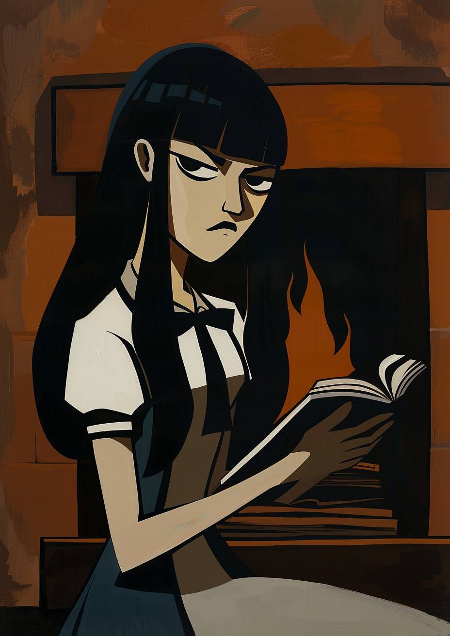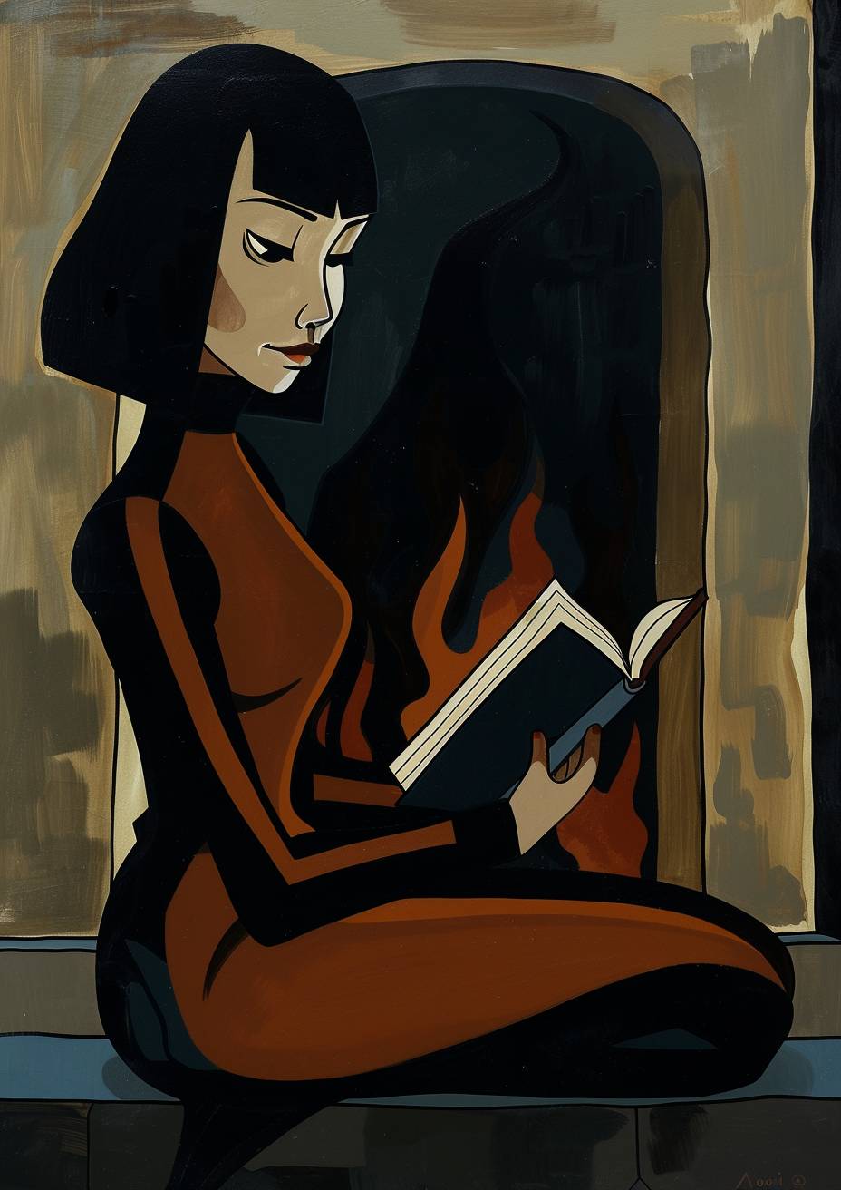 Aoi is reading a mystery novel by a fireplace.