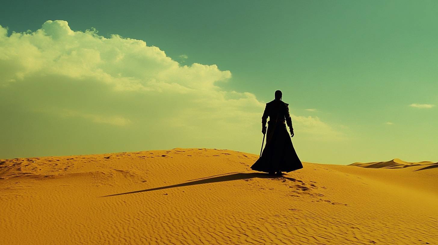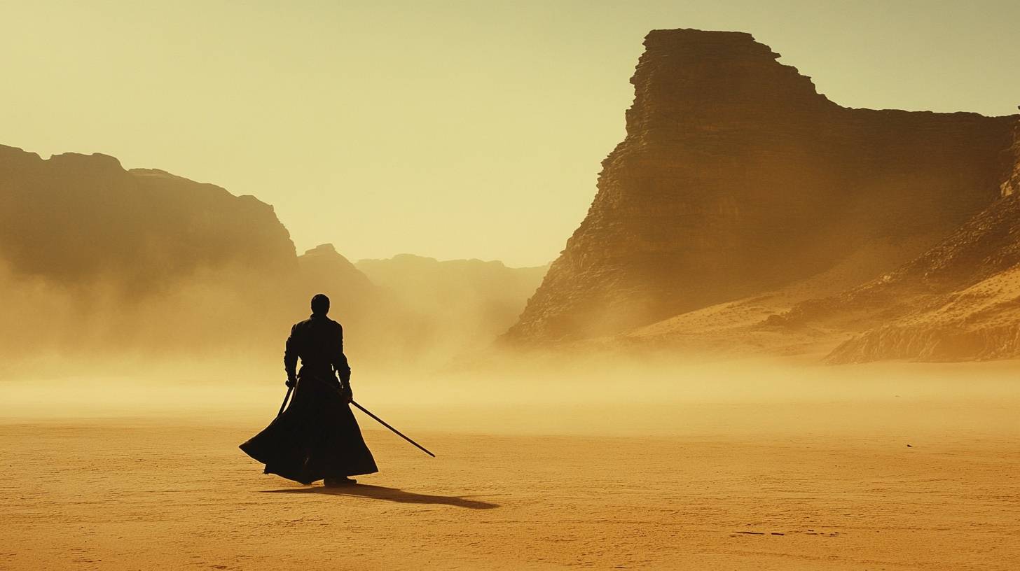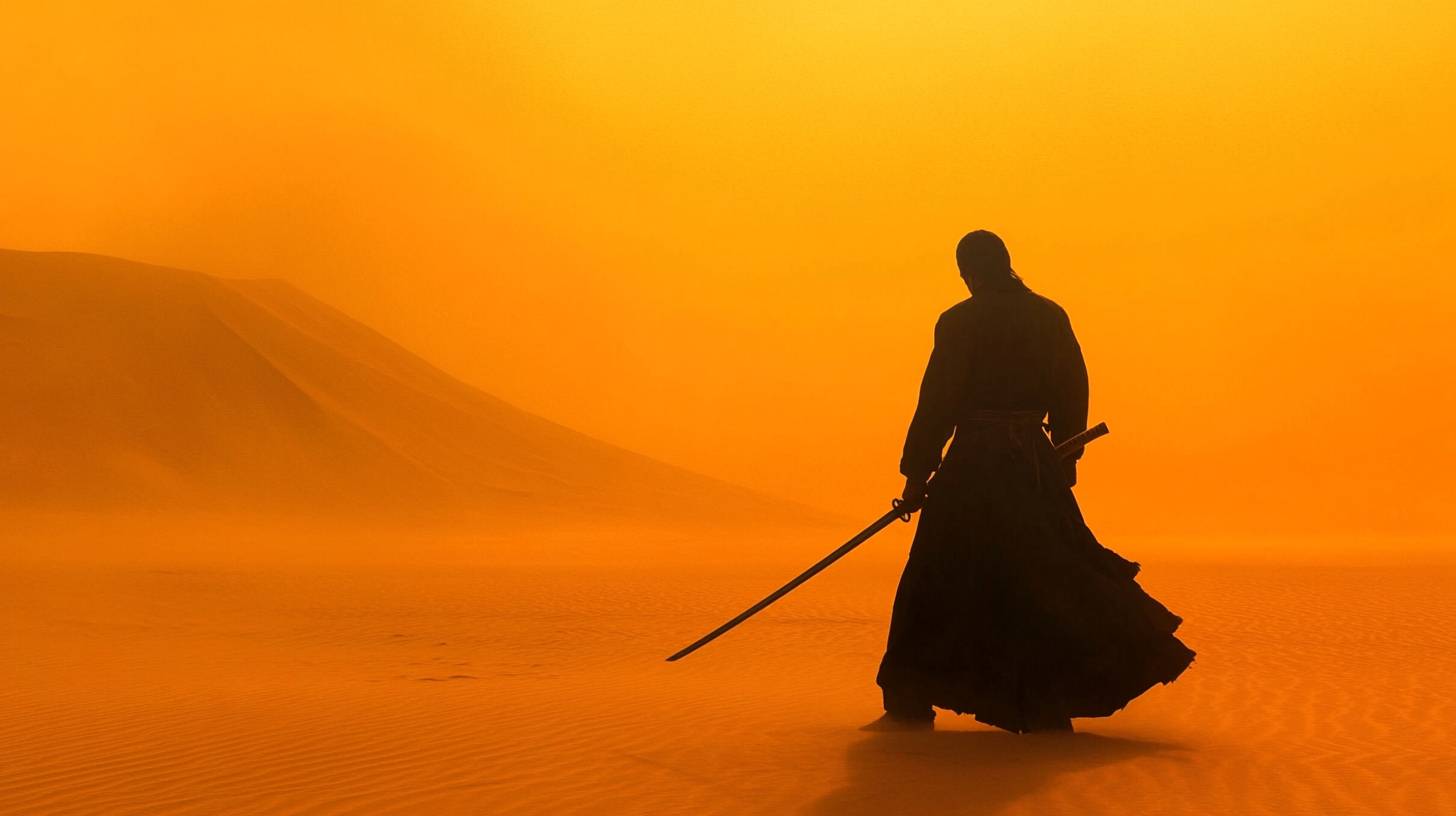 A swordsman alone in the desert