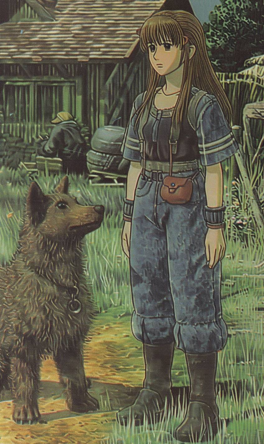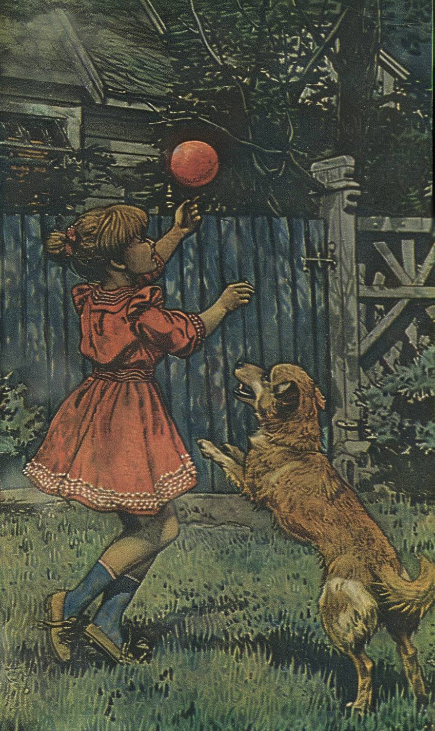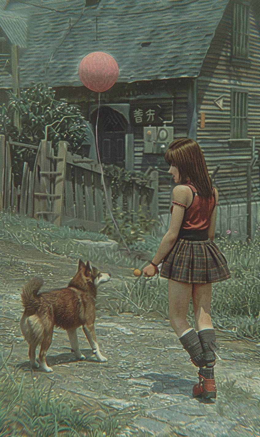 Sora is playing fetch with a dog in a yard.