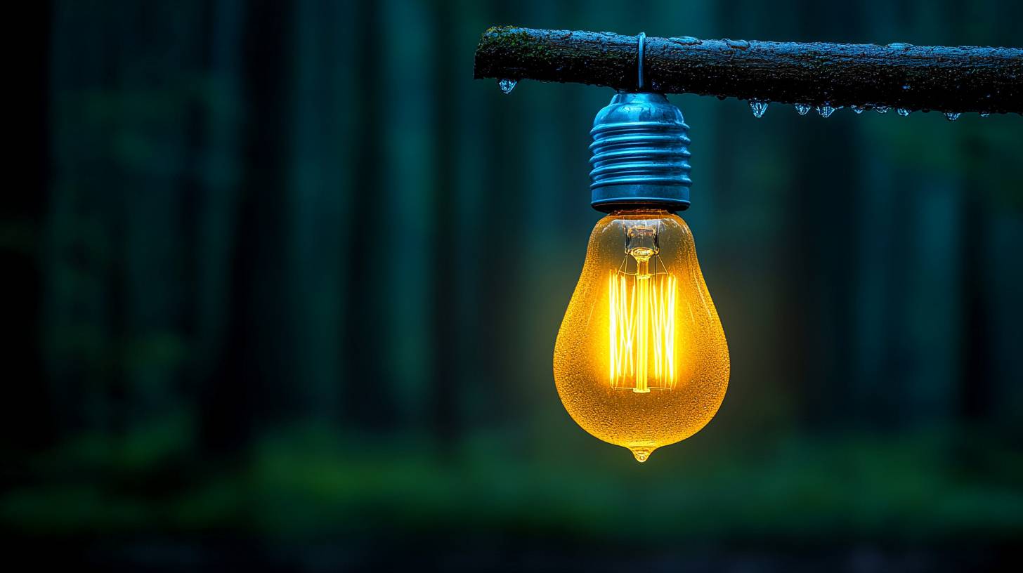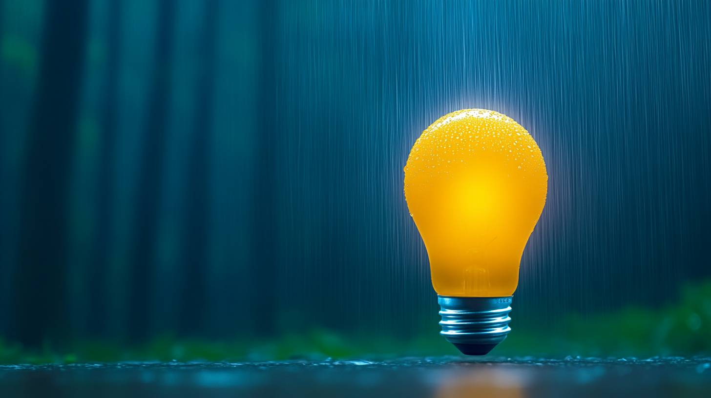 Pouring rain, foggy, night, stunning, photograph of water droplets seemingly suspended around the lightbulb, each droplet reflecting the bulb’s light, creating a sparkling effect around it. --chaos 30 --ar 16:9 --style raw --sref 753563348 --personalize w8lrxuz --stylize 875 --v 6.1