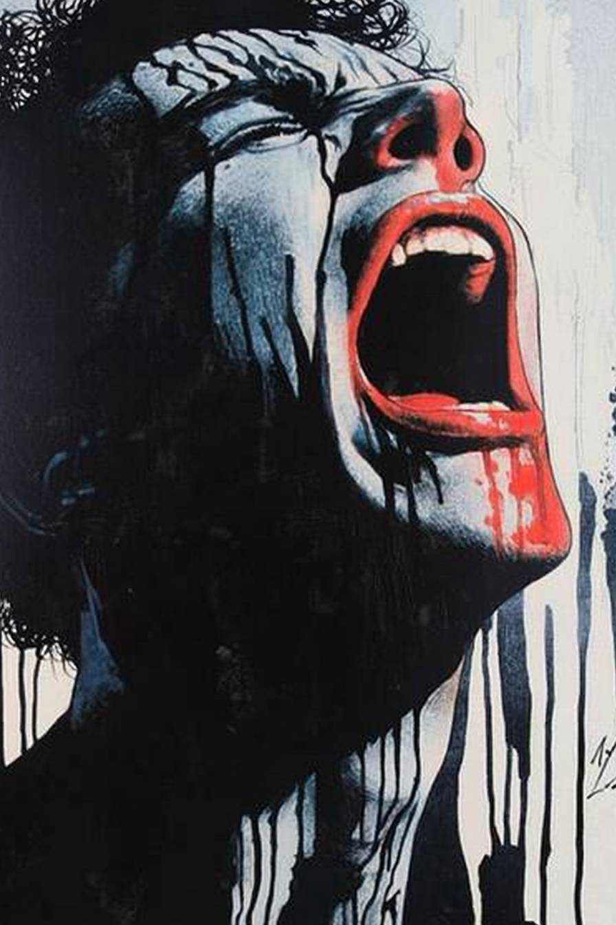 extreme close up on a man crying desperately, tears all over the face, mouth open in desperate facial expression, in the style of waterbrush colors a graphic novel, --ar 2:3 --quality 2 --sref 4077661607 --sw 20 --v 6.1