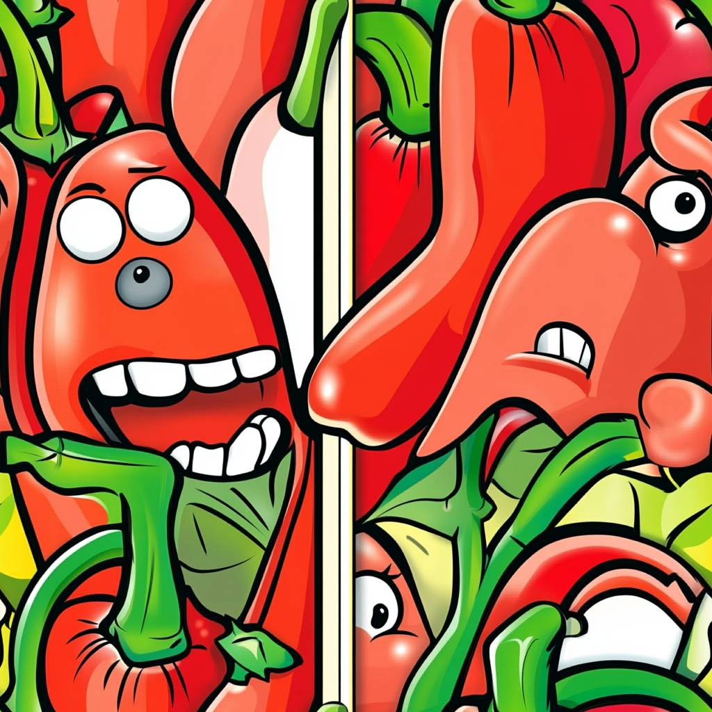 Weird Red Hot Chili Peppers, cartoon style, red colors