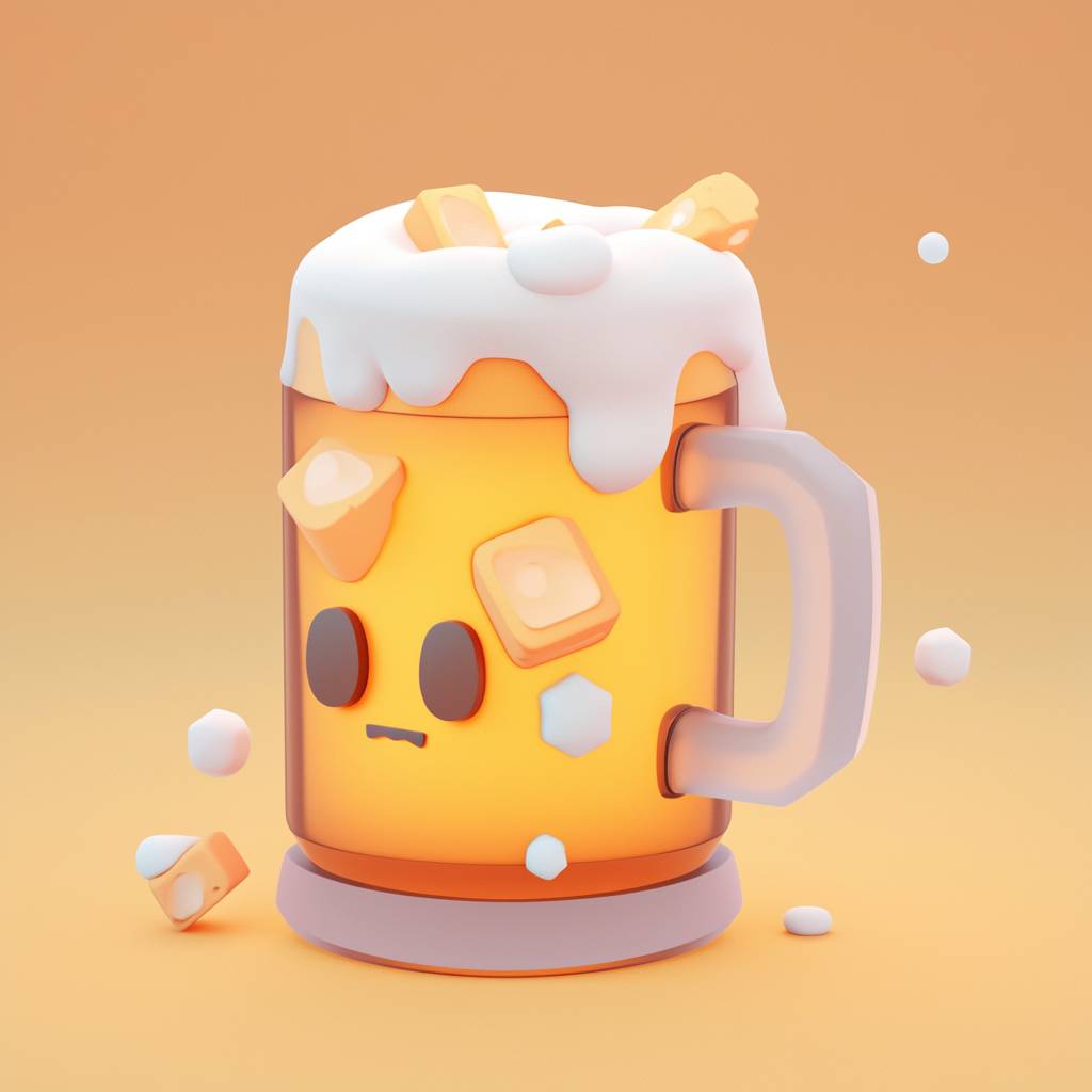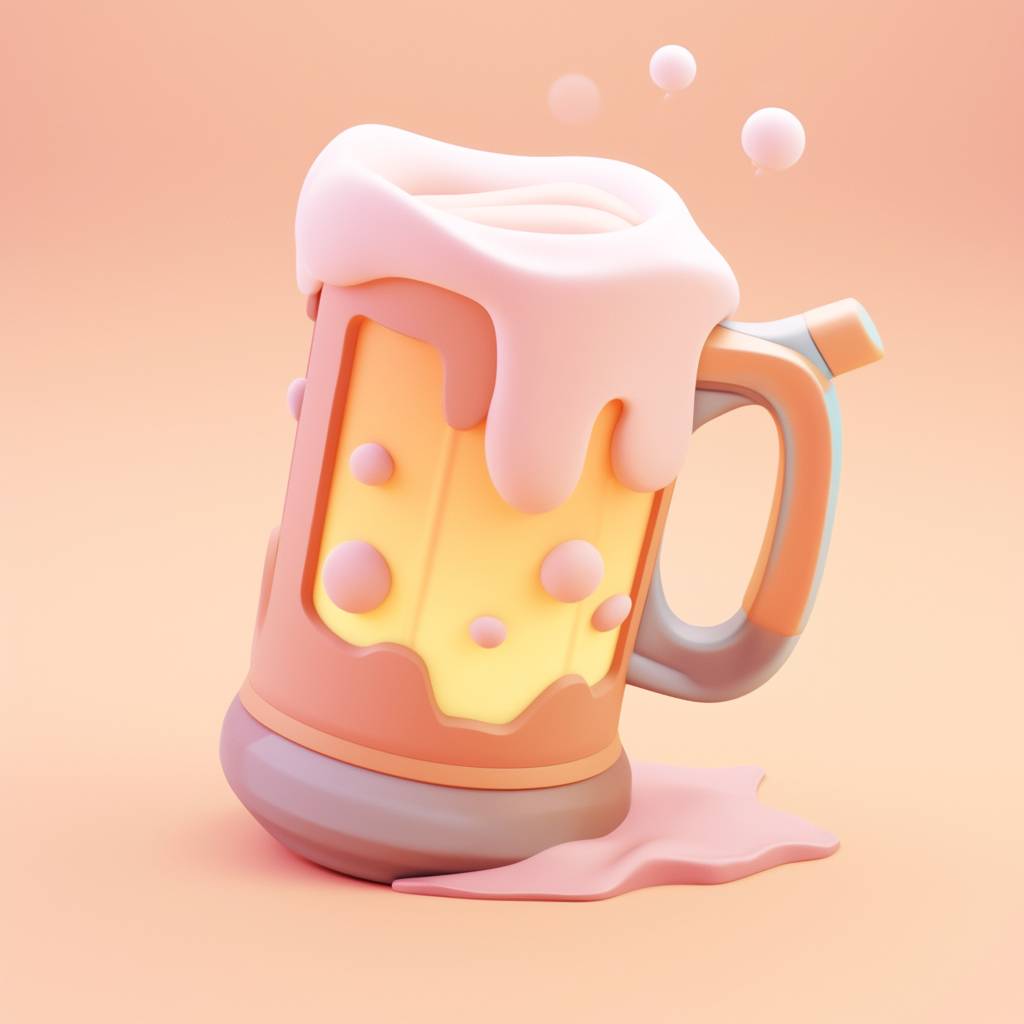 3D rendering of a beer, icon design, light background, low polygon, UI, 3D rendering made by Mac Conner, popular in polycount, superflat, bryce 3d, 8k --ar 1:1 --niji 5 --style expressive