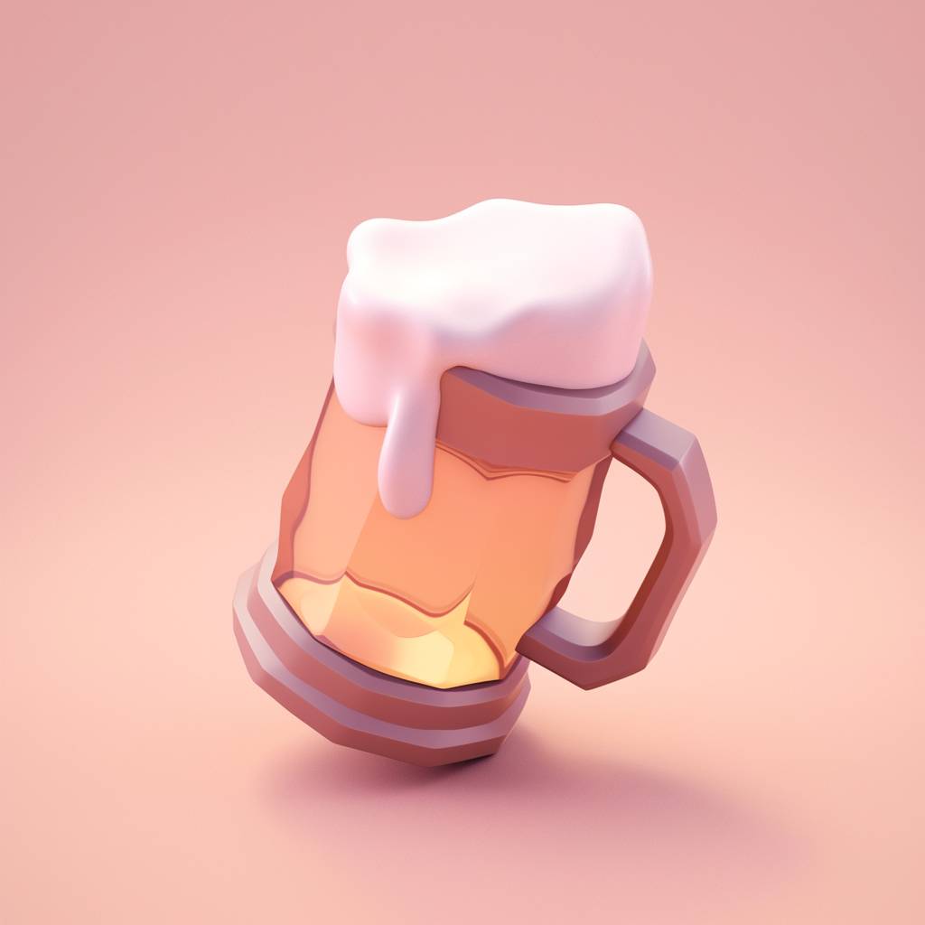 3D rendering of a beer, icon design, light background, low polygon, UI, 3D rendering made by Mac Conner, popular in polycount, superflat, Bryce 3D, 8k