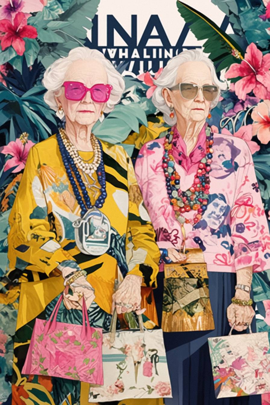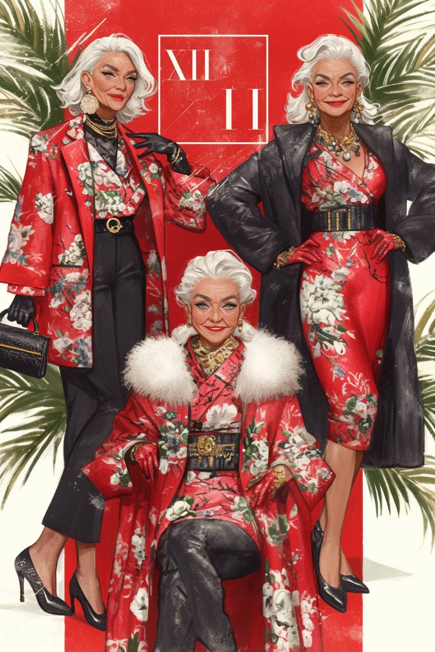 a gang of 4 Beautiful Female yakuza senior citizen Japanese Sukeban Grandmothers, gangster themed background is underground Tokyo casino --sref 876348073 --chaos 10 --weird 3 --stylize 400 --niji 6 --ar 2:3