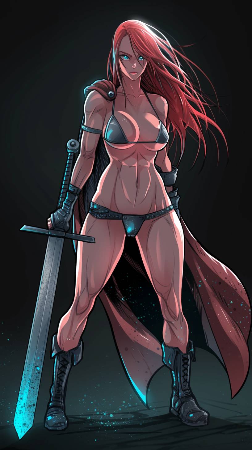 A simple drawing of Red Sonja with flat colors.