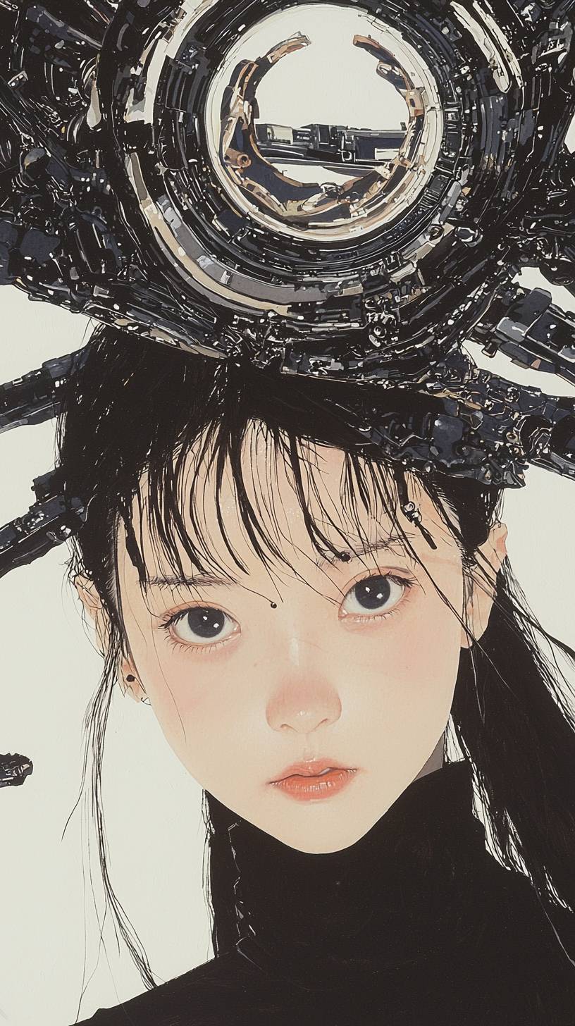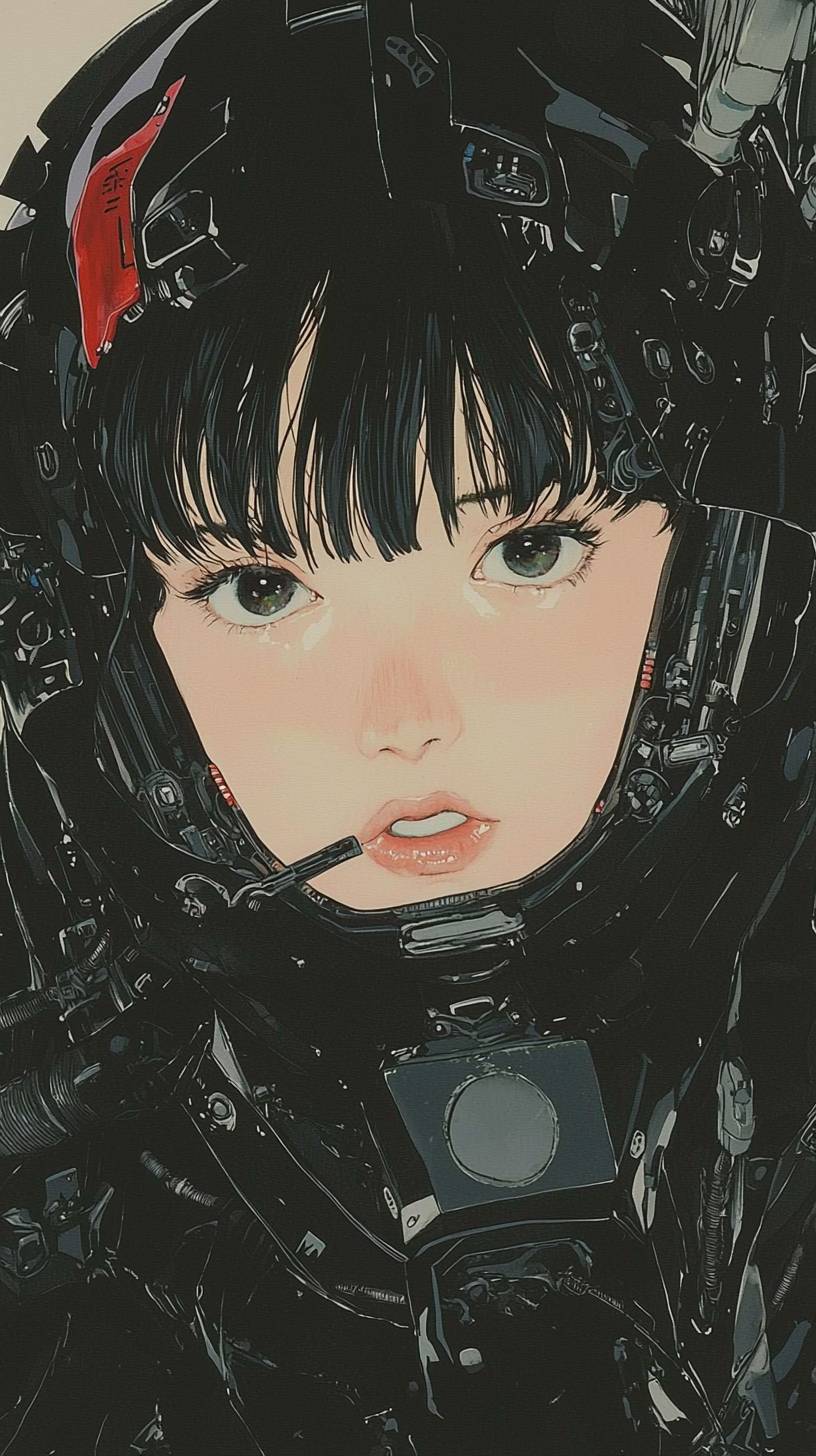 Goth scifi, wide angle, detailed and realistic painting by hajime sorayama and katsuhiro otomo --ar 9:16 --quality 2 --personalize r48wu4e --stylize 750 --v 6.1