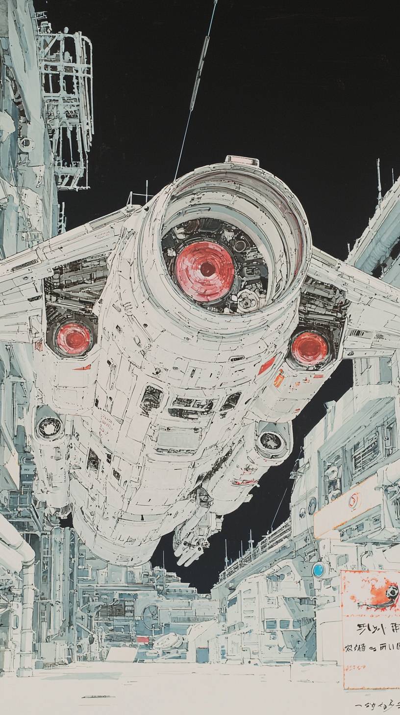 Goth scifi, wide angle, detailed and realistic painting by Hajime Sorayama and Katsuhiro Otomo