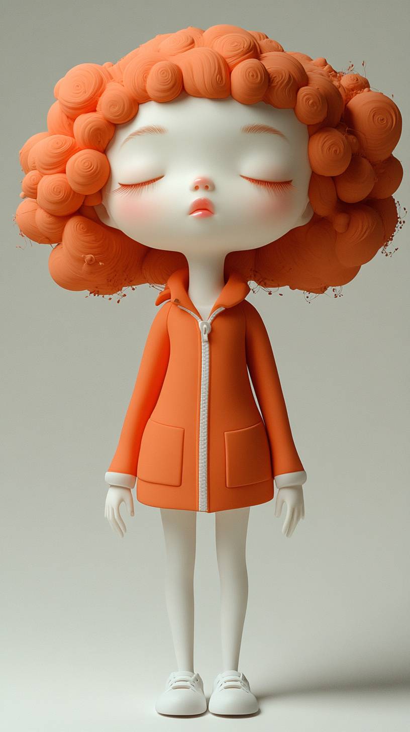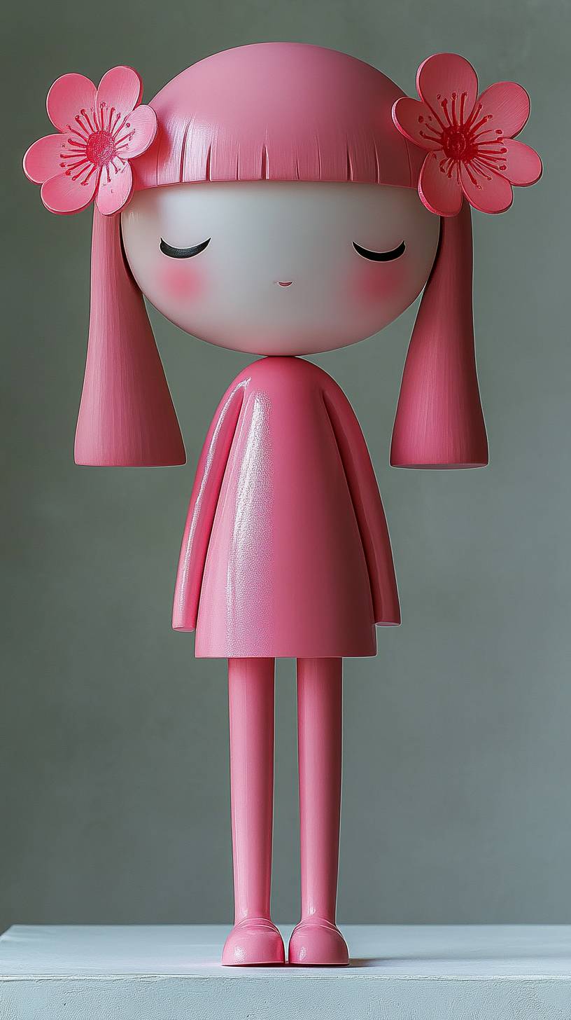 Fun girl dolls for daily life, fashion products, trendy figures, as new product development and design, attracting much attention, author: Yoshitomo Nara, Junko Mizuno, Takashi Murakami, the design inspiration of the three artists is combined, abstract art, simple shape, abandoning figurative realism, artistic masterpiece, resin material, white background, soft lighting, shot with Canon EOS R8, Unreal Engine 5, Octane rendering, RTX turned on, art display, award-winning works, --chaos 7 --ar 9:16 --style raw --stylize 375 --v 6.1
