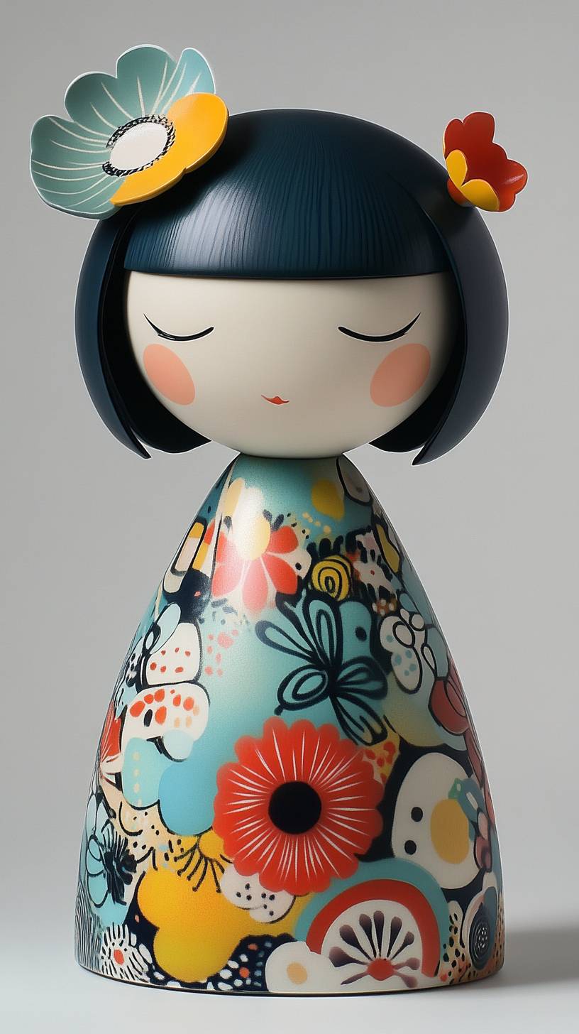 Fun girl dolls for daily life, fashion products, trendy figures, attracting much attention as new product development and design. Authors: Yoshitomo Nara, Junko Mizuno, Takashi Murakami. The design inspiration of the three artists combines abstract art, simple shapes, abandoning figurative realism. Artistic masterpieces made of resin material, white background, soft lighting, shot with Canon EOS R8, Unreal Engine 5, Octane rendering, RTX on, art display, award-winning works.