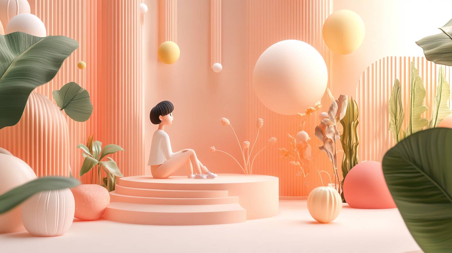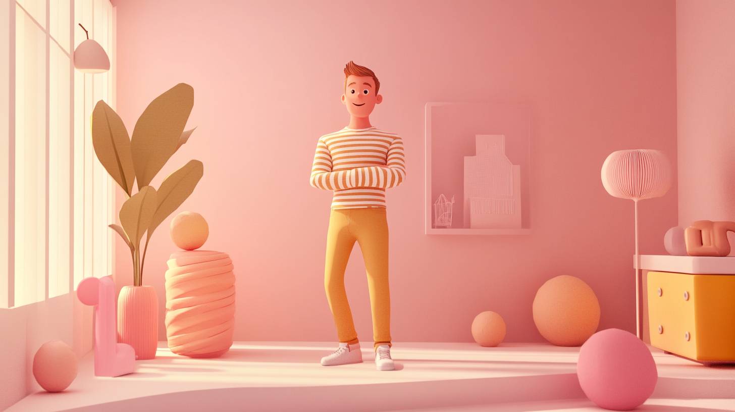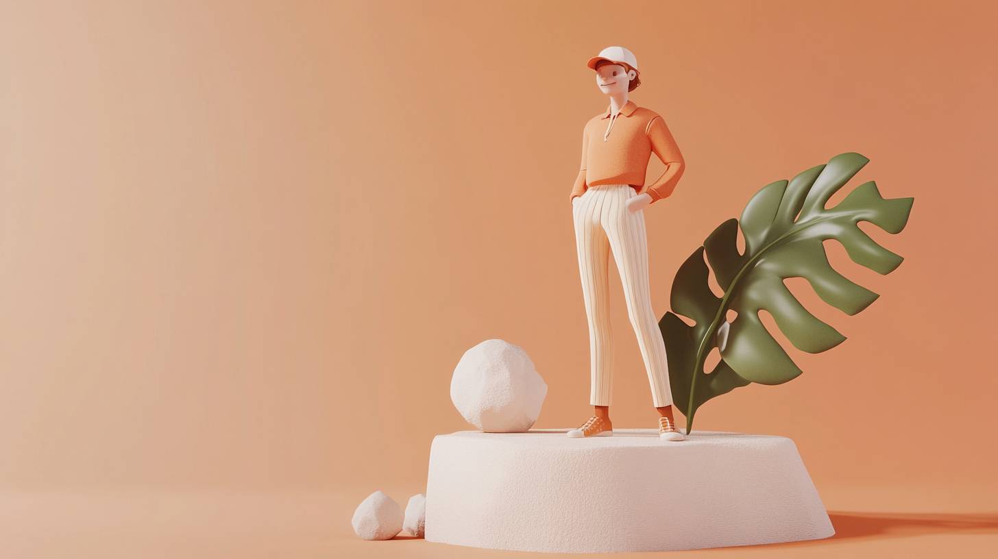 3D illustration, character, action, location, minimalist 3D, neutral color palette, subtle shading, interactive elements, cartoon style, clean modern aesthetic, 3D web graphics